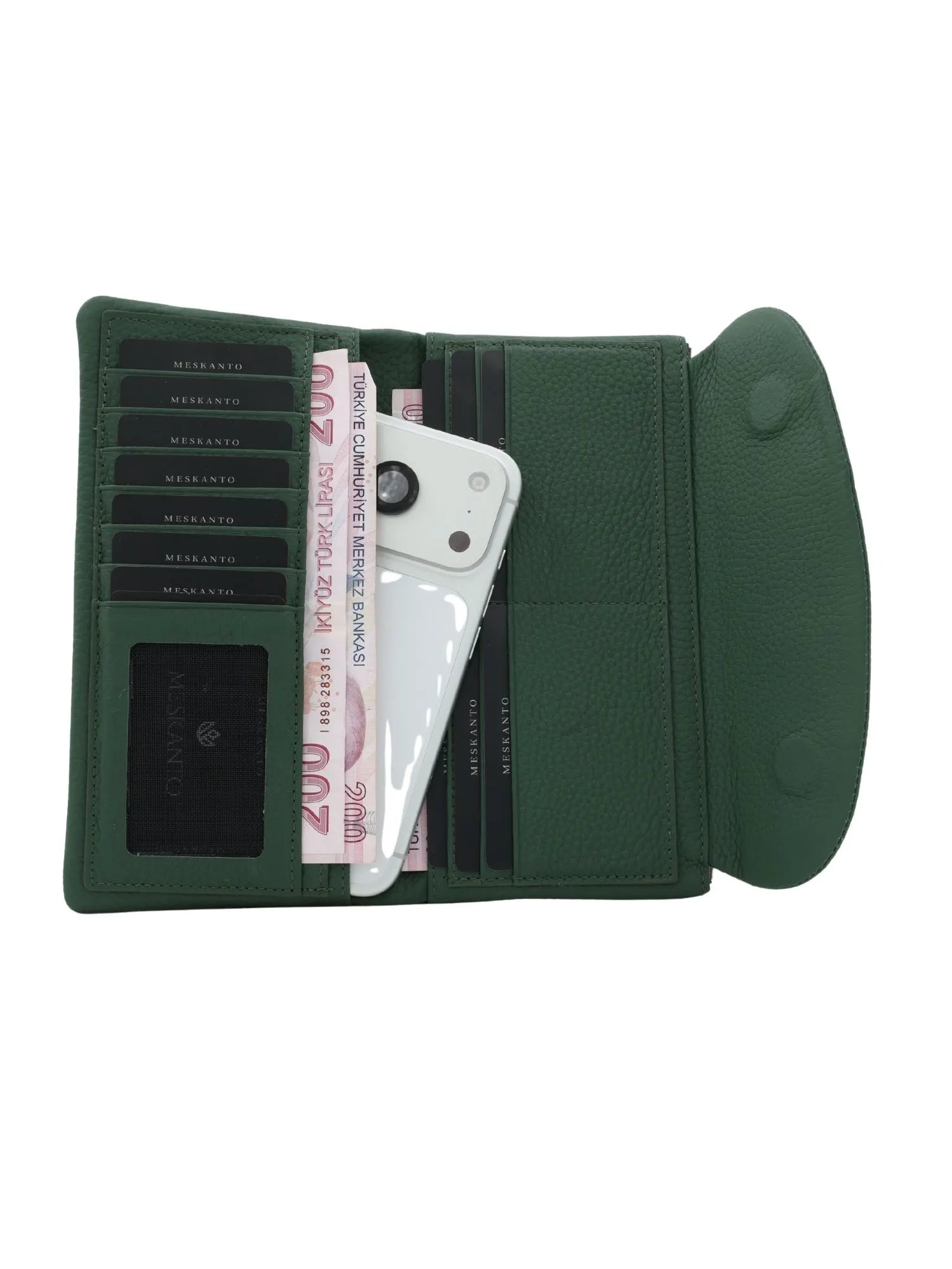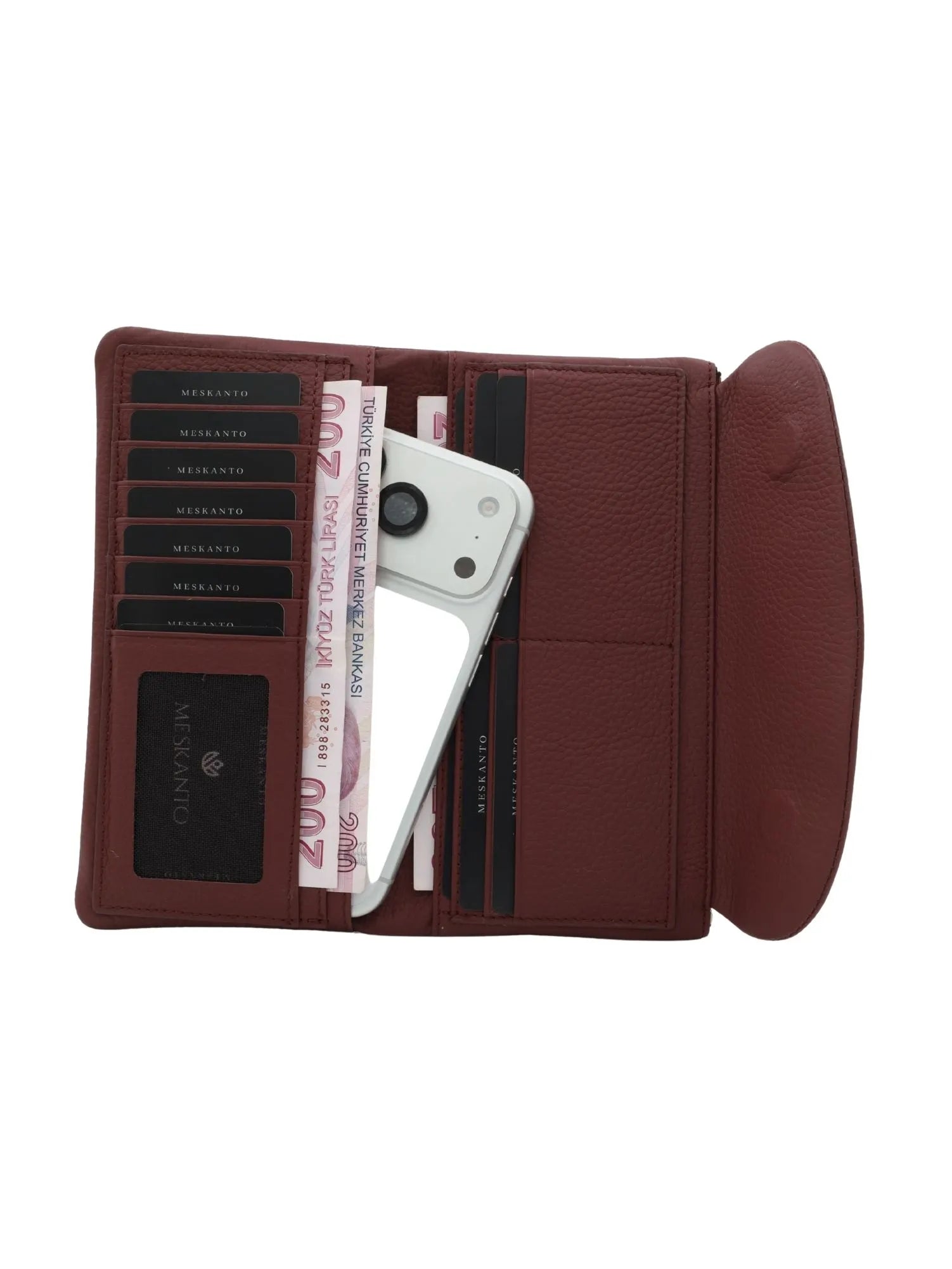 Daisy, özel telefon bölmesi sayesinde akıllı telefonunuzu güvenli bir şekilde cüzdan içinde taşıma imkanı sunar. 10 bağımsız kart yuvası, 1 kimlik kartı bölmesi ve 4 nakit para bölmesi, tüm kart ve kimliklerinizi düzenli bir şekilde saklamanızı sağlar. Fermuarlı para bölmesi, değerli eşyalarınız için ekstra güvenlik sunar.