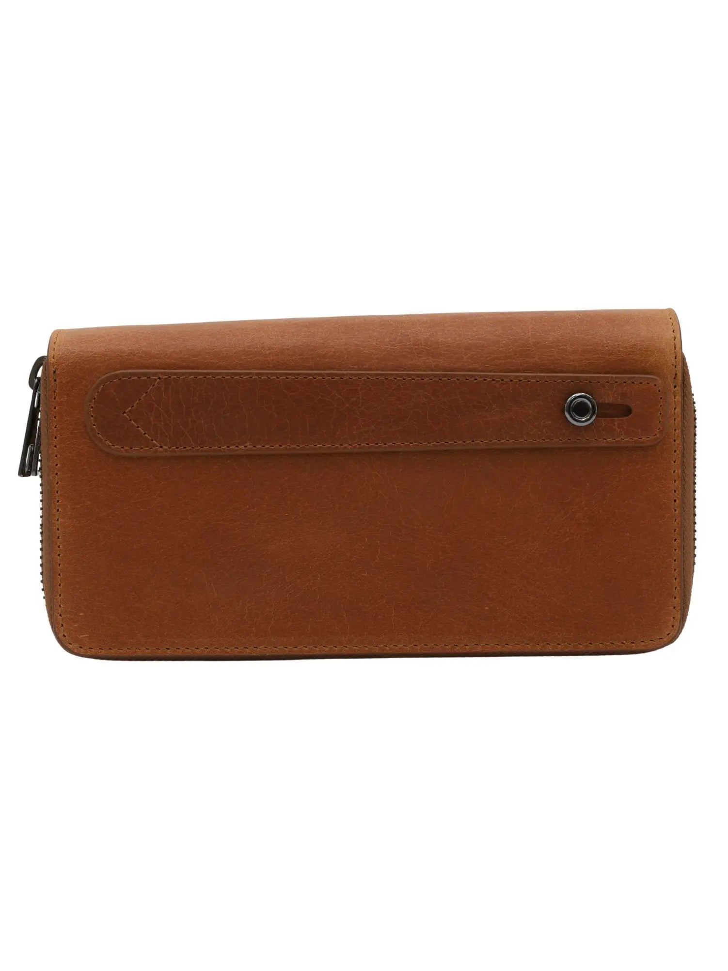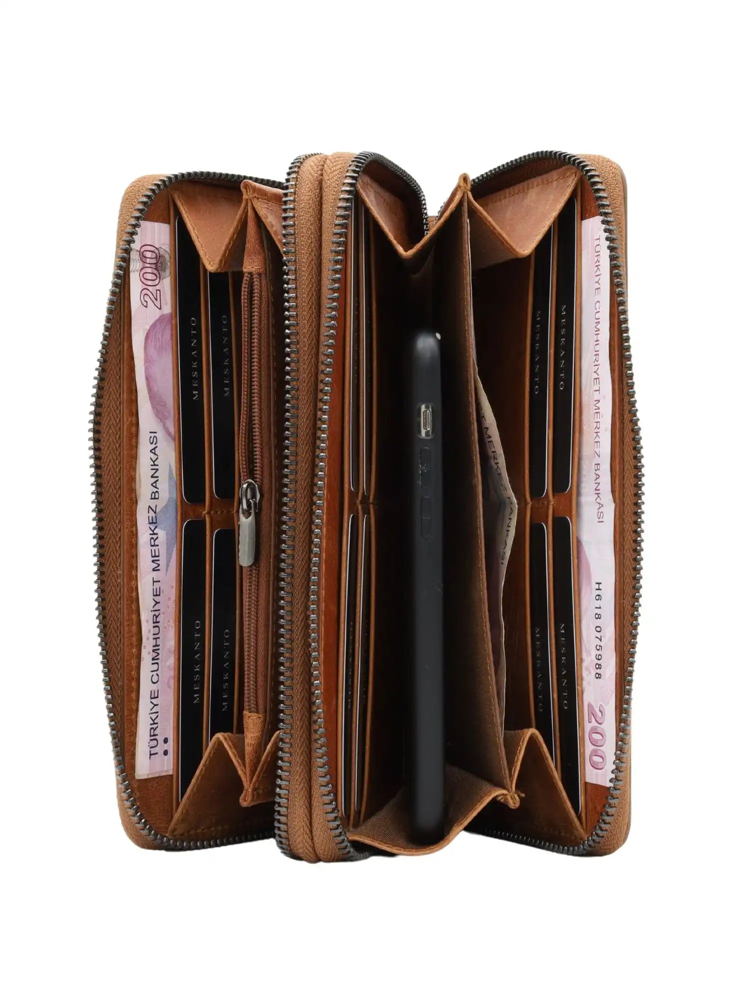 Ultra Hakiki Deri Çift Fermuarlı Cüzdan (Kahverengi)