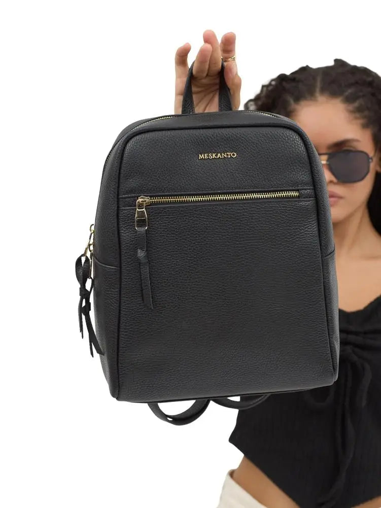 Zarafet ve işlevselliği bir araya getiren Meskanto Nova Hakiki Deri Sırt Çantası, %100 hakiki deri yapısıyla uzun ömürlü kullanım sunar. 30 cm yüksekliği, 25 cm genişliği ve 15 cm derinliğiyle ideal bir boyuta sahiptir. Ön kısmında fermuarlı geniş bir göz yer alırken, çift fermuarla açılan ana bölme içerisinde tablet için klipsli özel bir alan, fermuarlı küçük bir bölme ve bir adet kartlık bölmesi bulunur. Altın rengi metal detayları ve sade çizgileriyle her kombine uyum sağlayan bu şık siyah sırt çantası, hem günlük kullanımda hem seyahatlerde tarzınızı tamamlar.