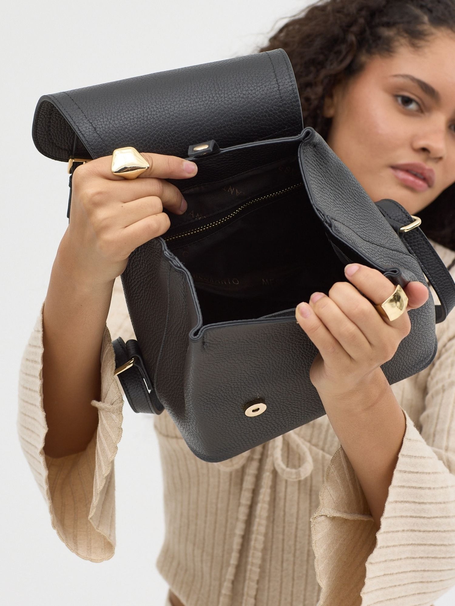 Meskanto Serena model hakiki deri sırt çanta, zamansız şıklığı modern işlevsellikle bir araya getirir. %100 hakiki deriden üretilen model, astarlı iç yapısı ile dayanıklılık sunarken; 1 adet fermuarlı ve 1 adet fermuarsız iç bölmesi sayesinde eşyalarınızı düzenli bir şekilde taşımanızı sağlar. Günlük yaşamda, işte, okulda ve seyahatlerinizde yanınızdan ayırmak istemeyeceğiniz bir parçadır. Gold metal aksesuarları ve zarif Meskanto logosu, tasarıma şık bir karakter katar. Ayarlanabilir omuz askısı ile konforu lükse dönüştüren bu çanta, uzun yıllar stilinizin vazgeçilmez tamamlayıcısı olacak.