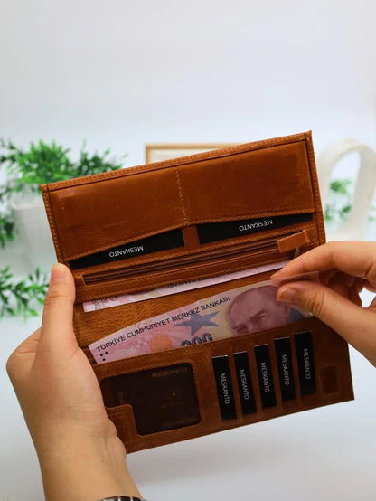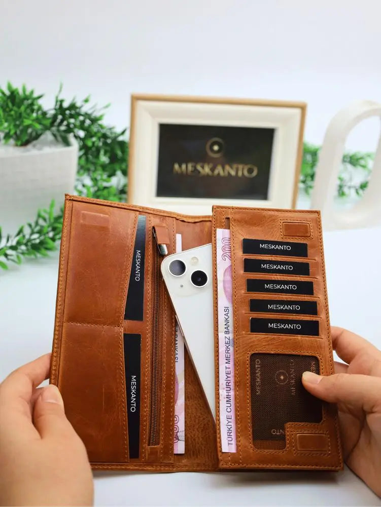 Maya Hakiki Deri Kanguru Telefon Bölmeli Kadın Cüzdan (Taba)