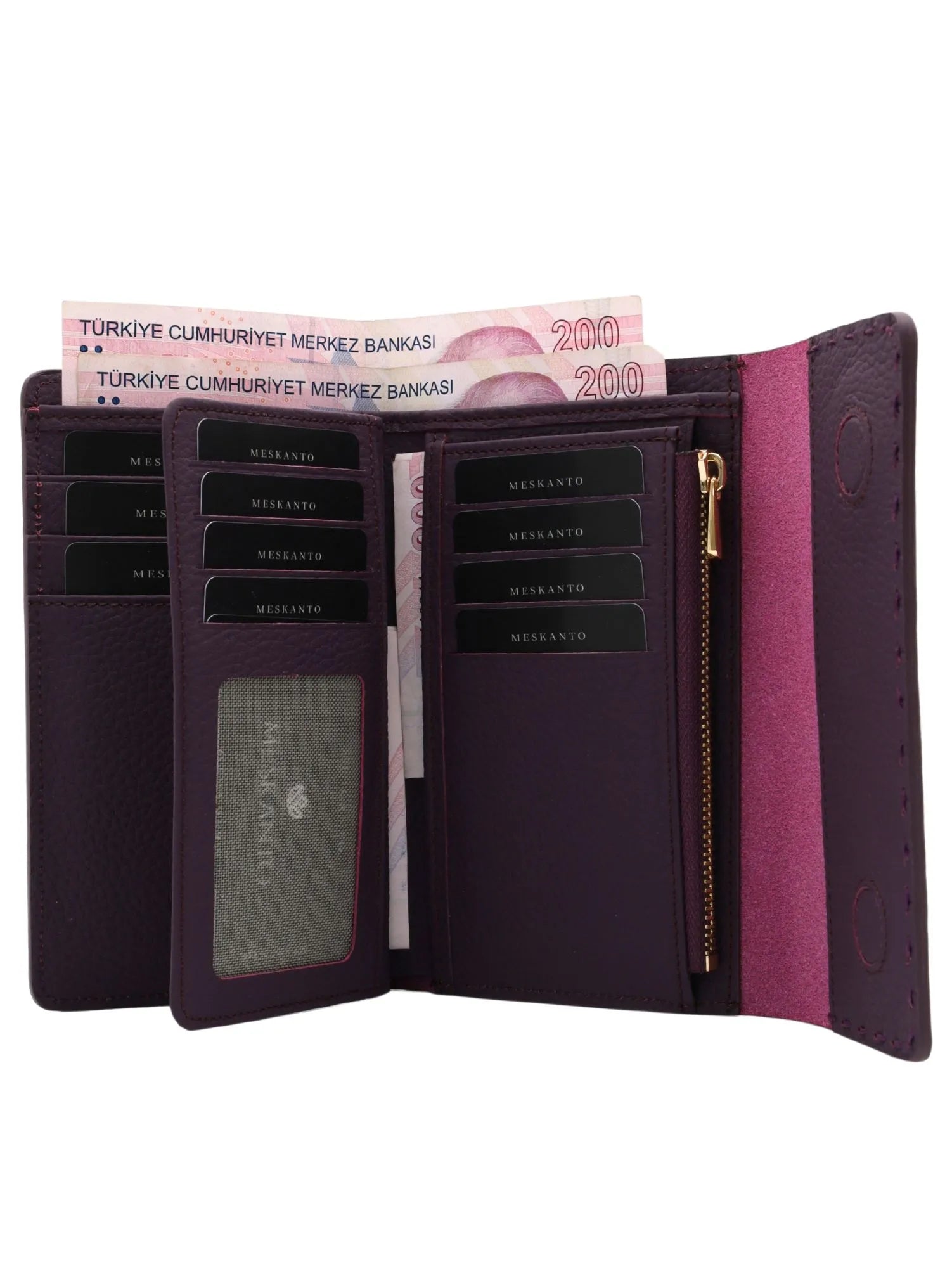 15,5 cm genişliği ve 10 cm yüksekliğiyle çantanıza kolayca sığar. Kompakt boyutuna rağmen 16 bağımsız kart yuvası ve nakit para bölmesiyle tüm ödeme araçlarınızı düzenli bir şekilde taşımanızı sağlar. İç kısmındaki fermuarlı bir adet göz, bozuk para veya küçük değerli eşyalar için güvenli bir alan sunar.