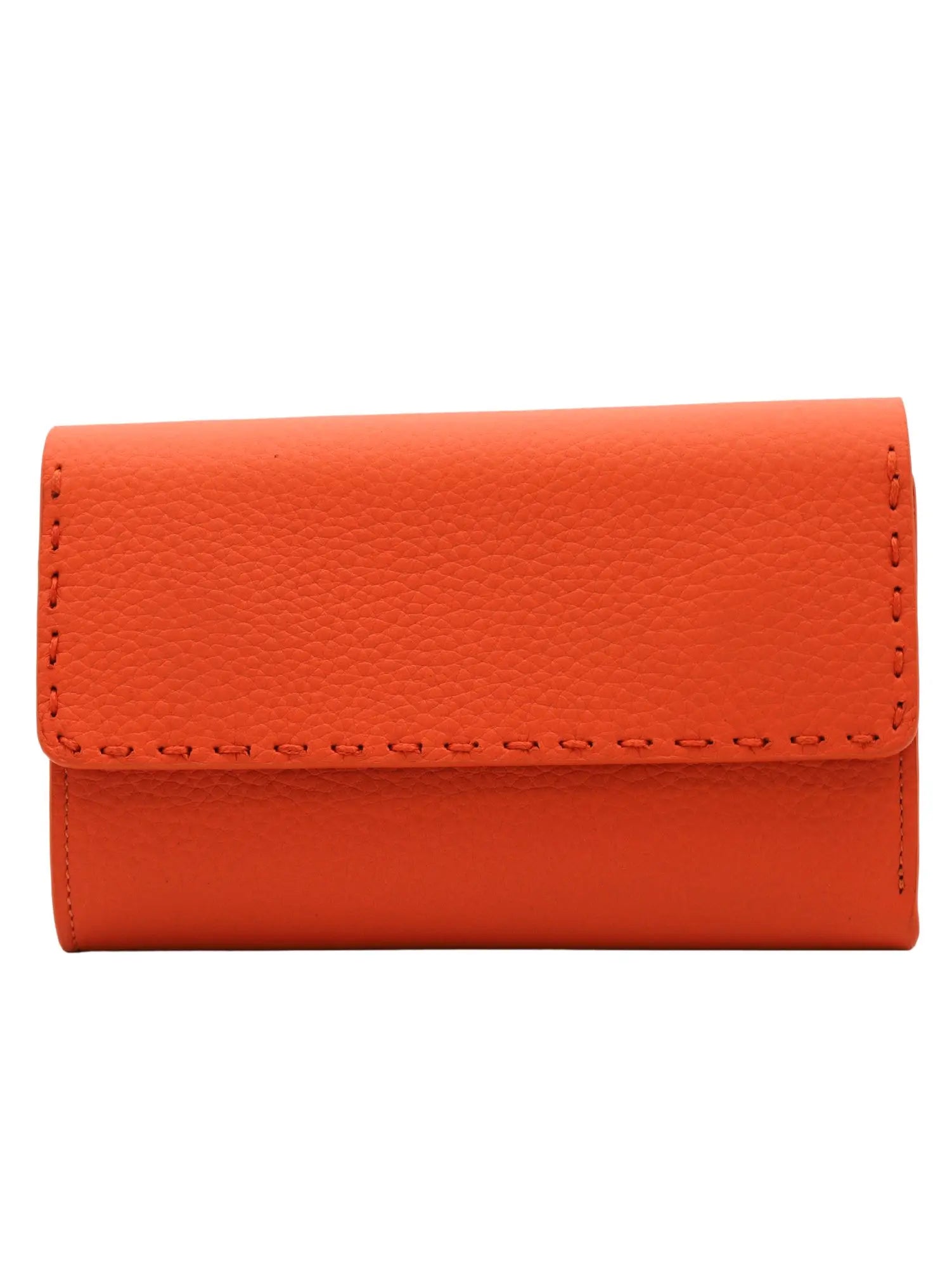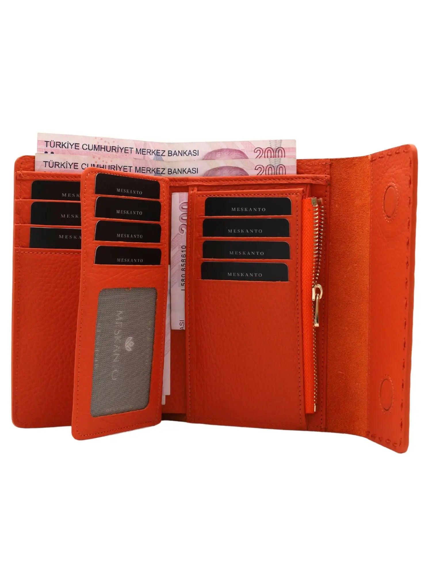 Mini Clarice Hakiki Deri Kadın Cüzdan (Turuncu)