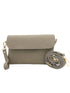 Alina Hakiki Deri Clutch El ve Omuz Çantası (Gri)