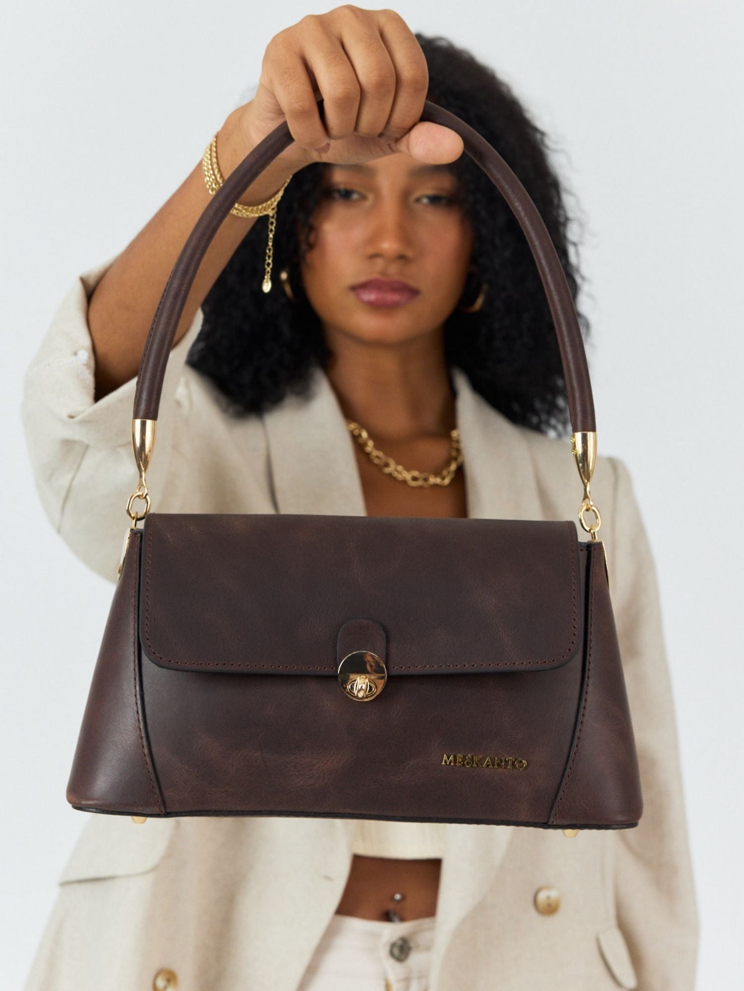 Meskanto - Hakiki Deri Kadın Omuz Çantası - MES-B-1002-Acı Kahve