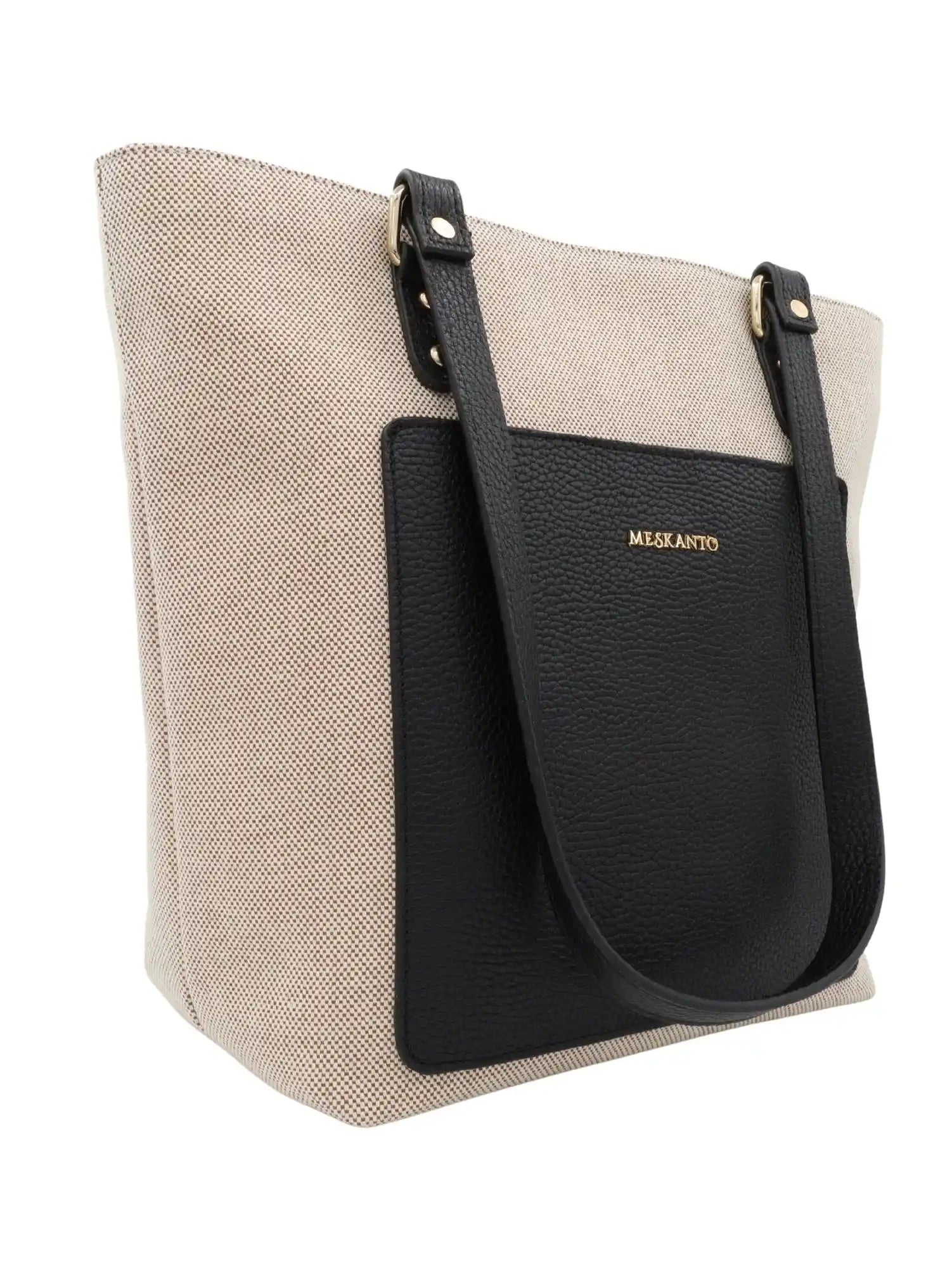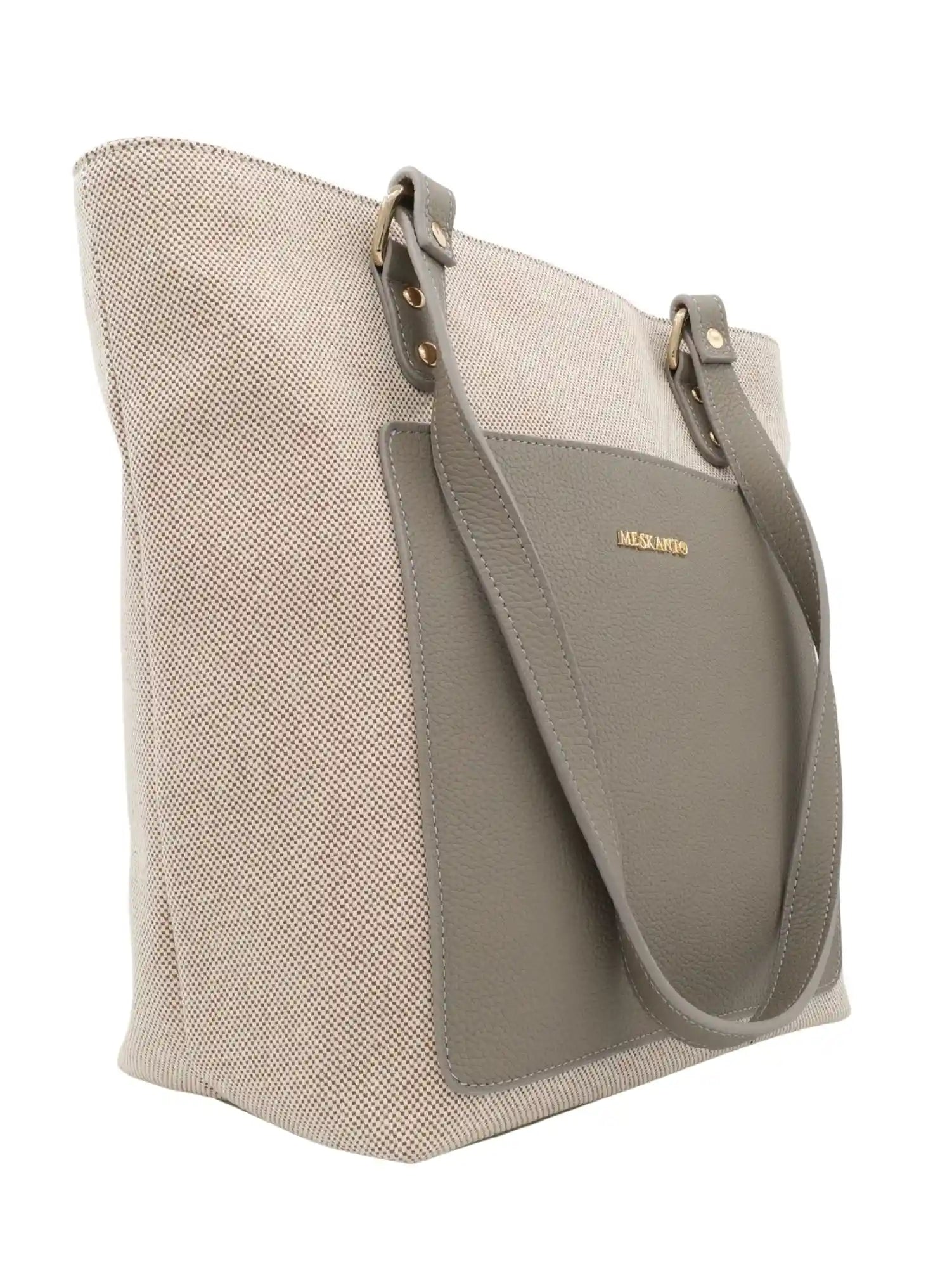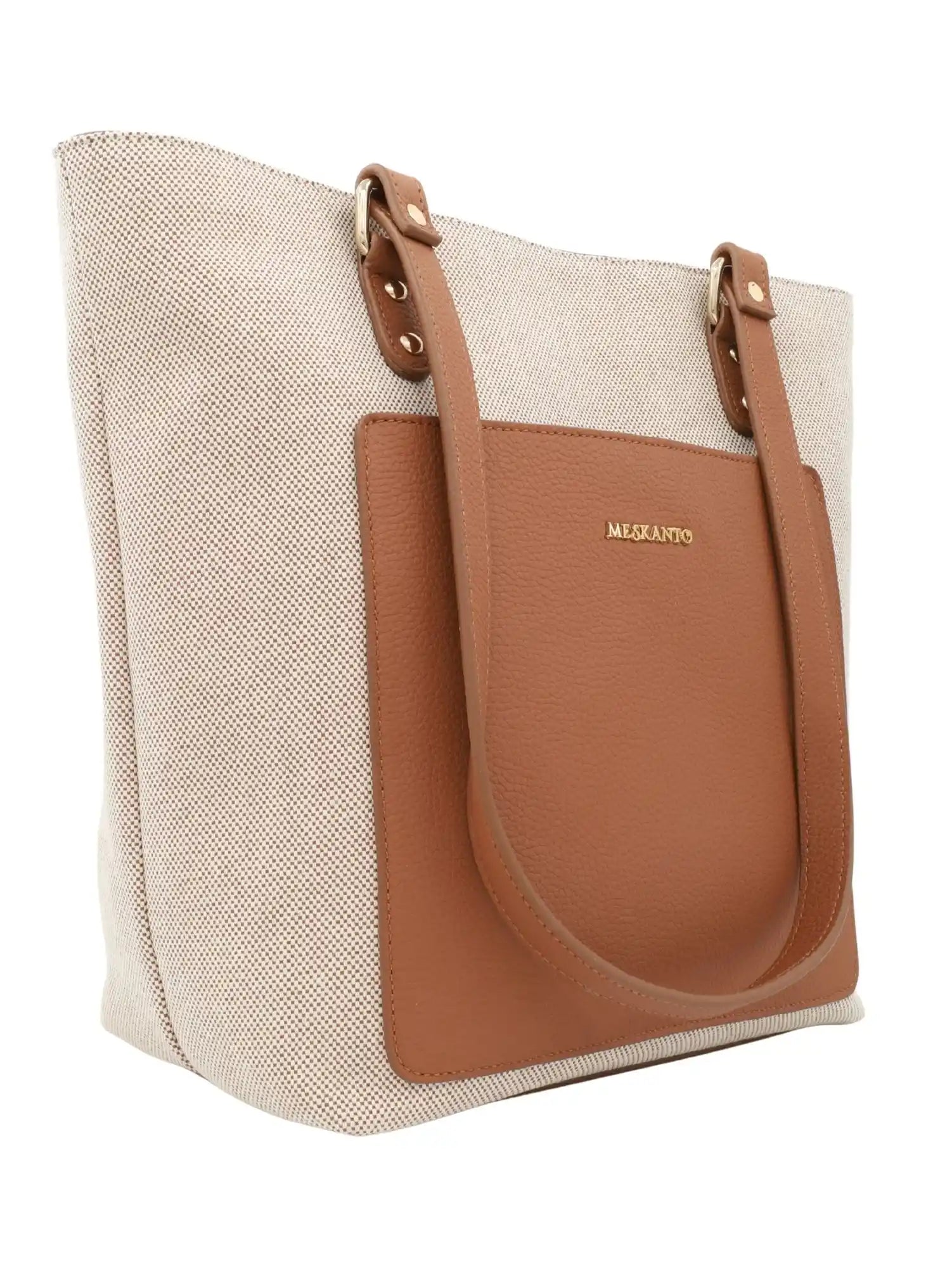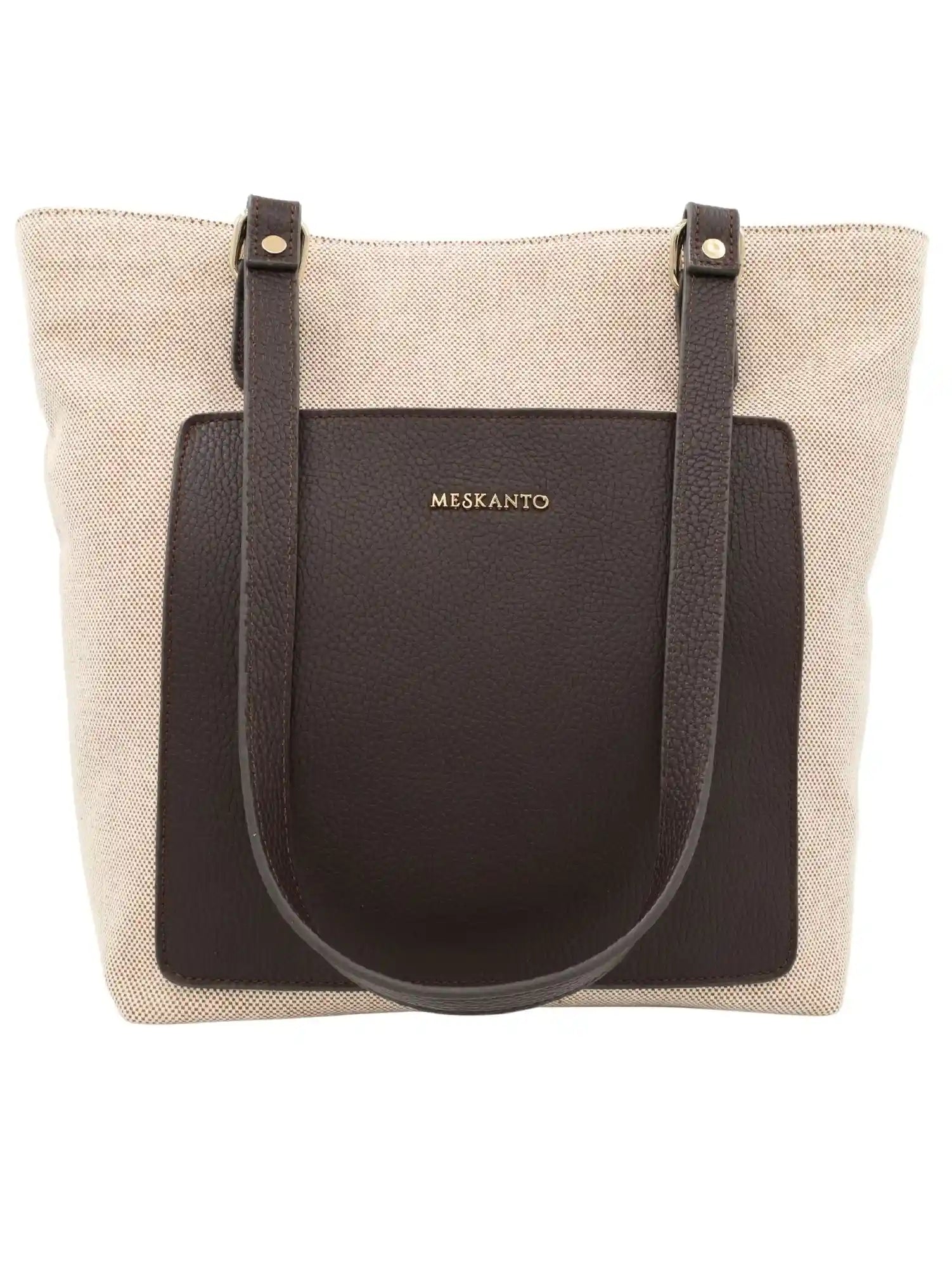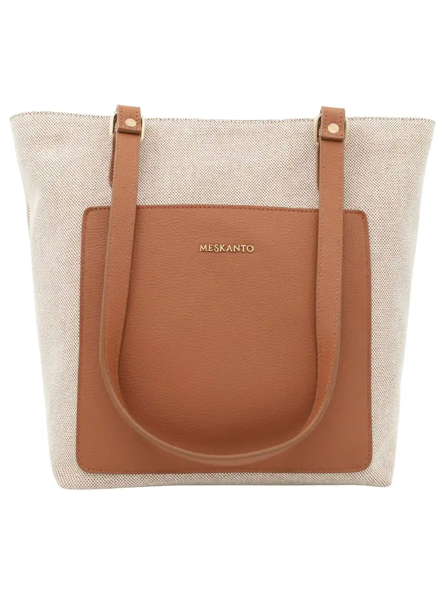 Meskanto Kanvas Tote Çanta, günlük yaşamda ihtiyaç duyduğunuz her şeyi yanınıza almanız için tasarlandı. Gövdesi dayanıklı kanvas kumaştan üretilmiş, taşıma sapları ve ön cebi ise %100 hakiki deridir. İç kısmında biri büyük, diğeri fermuarlı olmak üzere iki cep bulunur; böylece eşyalarınızı düzenli bir şekilde taşıyabilirsiniz. Şık ve sade görünümüyle hem ofiste hem şehir hayatında tarzınızı tamamlar.