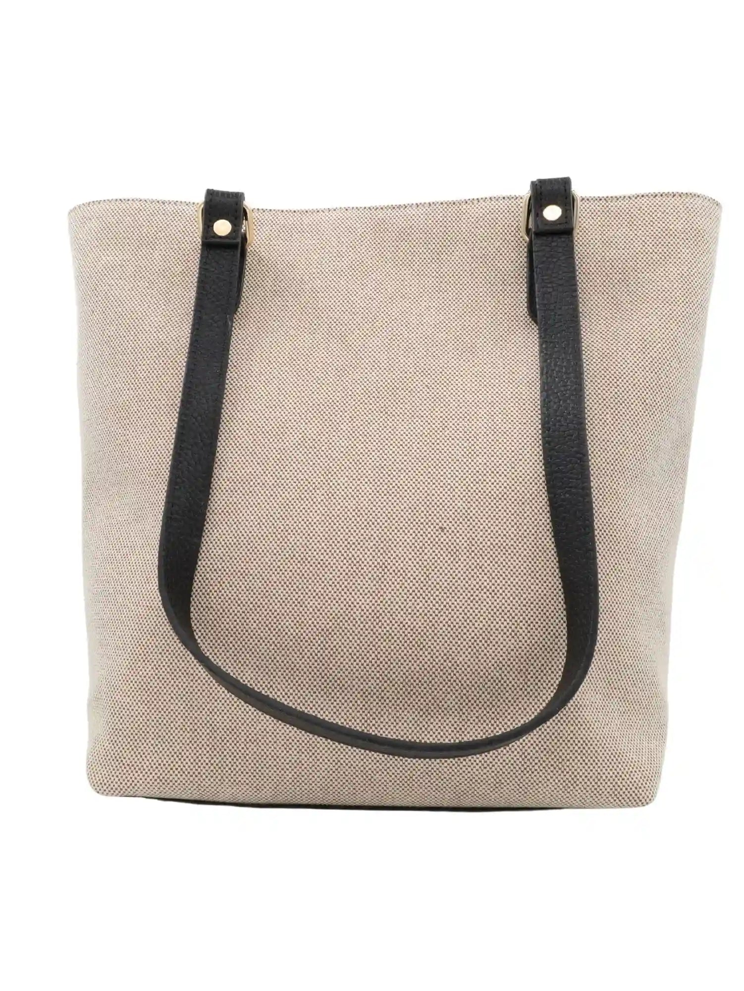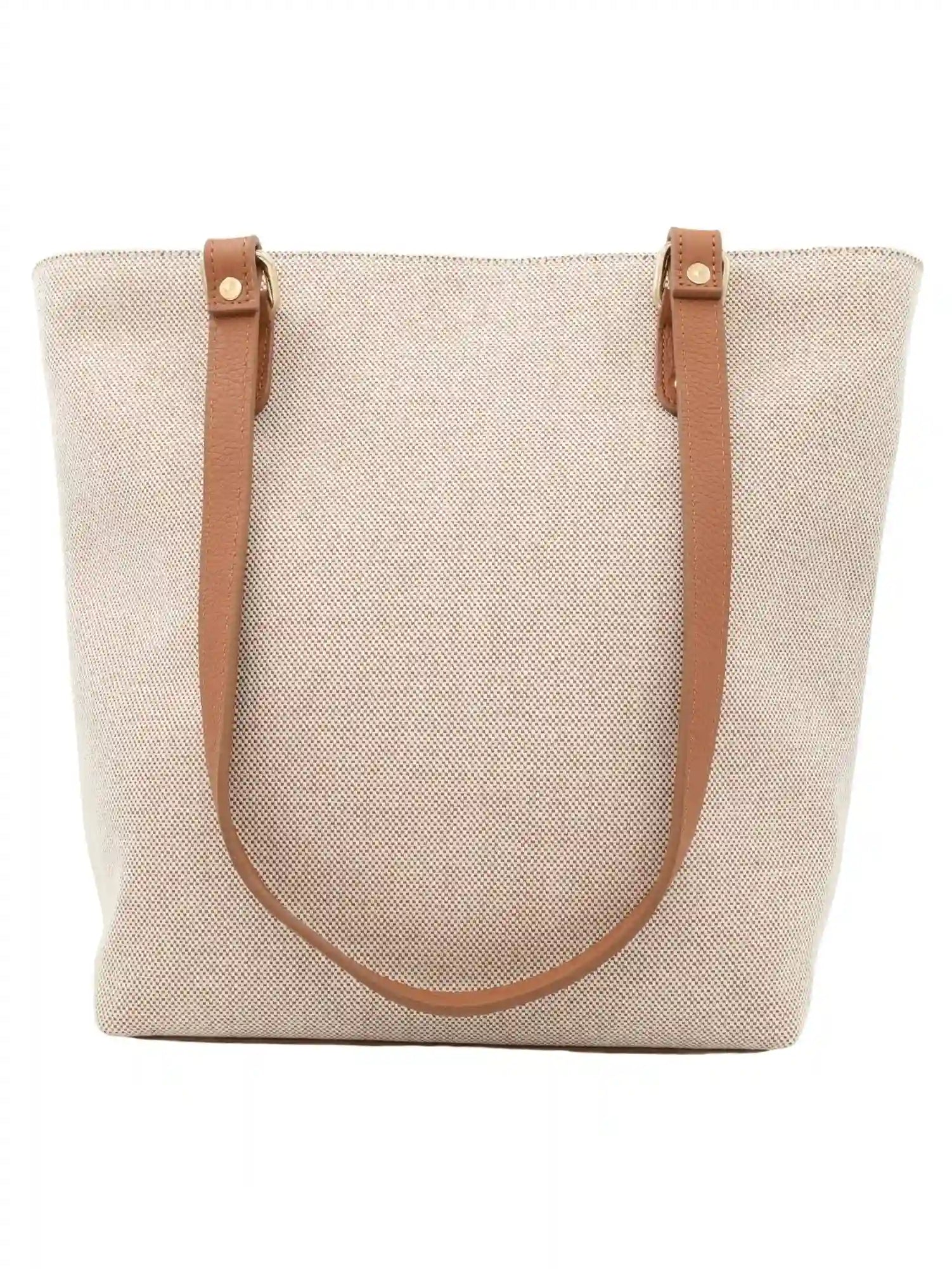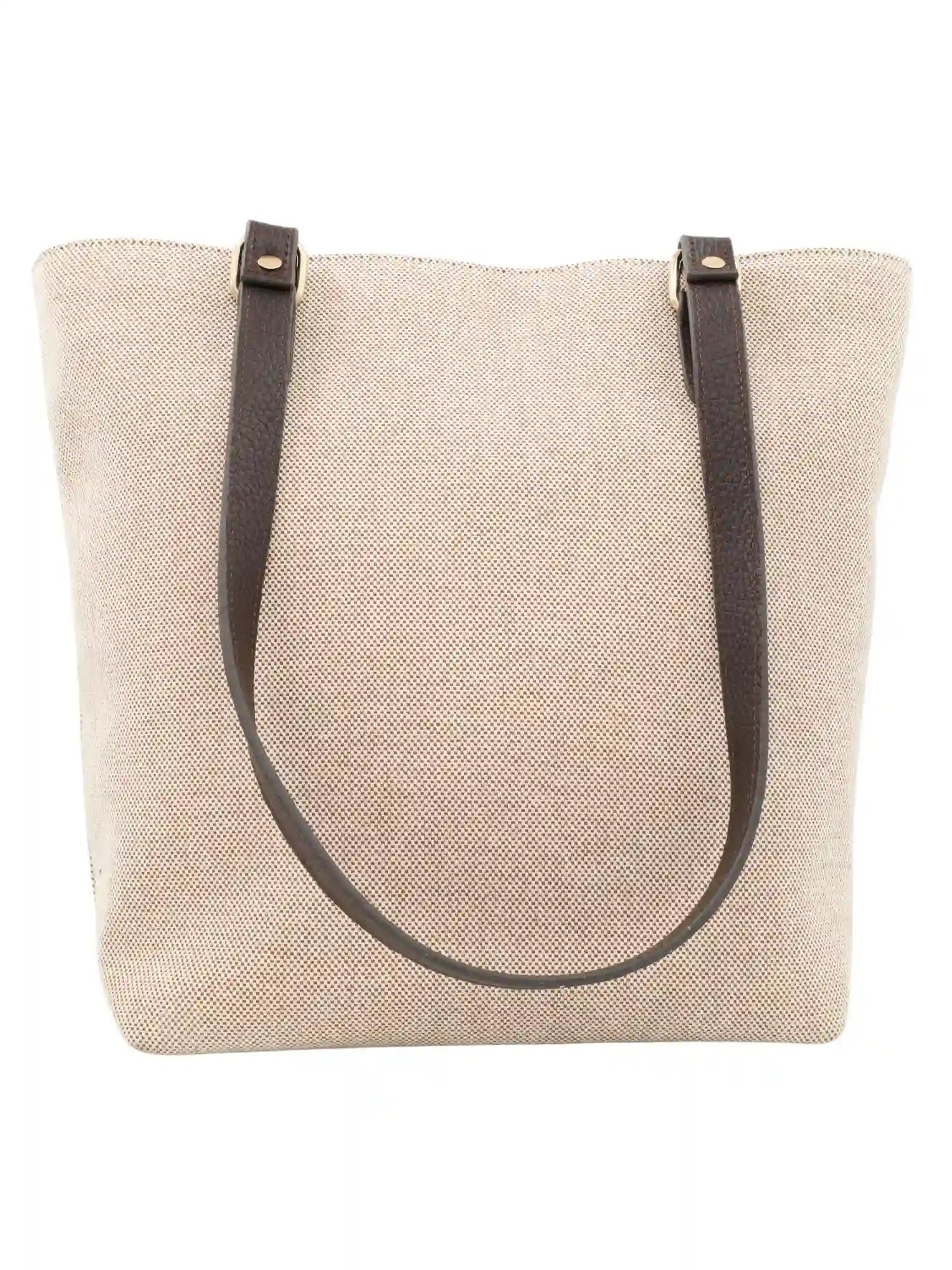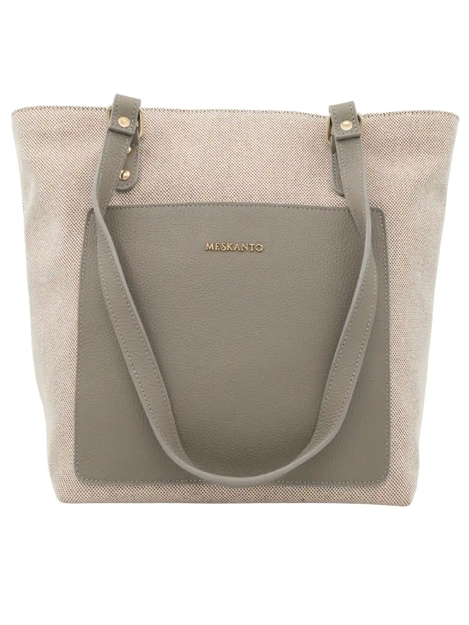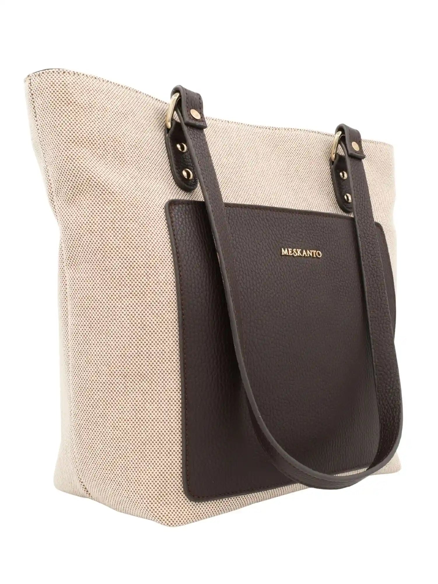 Meskanto Kanvas Tote Çanta, günlük yaşamda ihtiyaç duyduğunuz her şeyi yanınıza almanız için tasarlandı. Gövdesi dayanıklı kanvas kumaştan üretilmiş, taşıma sapları ve ön cebi ise %100 hakiki deridir. İç kısmında biri büyük, diğeri fermuarlı olmak üzere iki cep bulunur; böylece eşyalarınızı düzenli bir şekilde taşıyabilirsiniz. Şık ve sade görünümüyle hem ofiste hem şehir hayatında tarzınızı tamamlar.