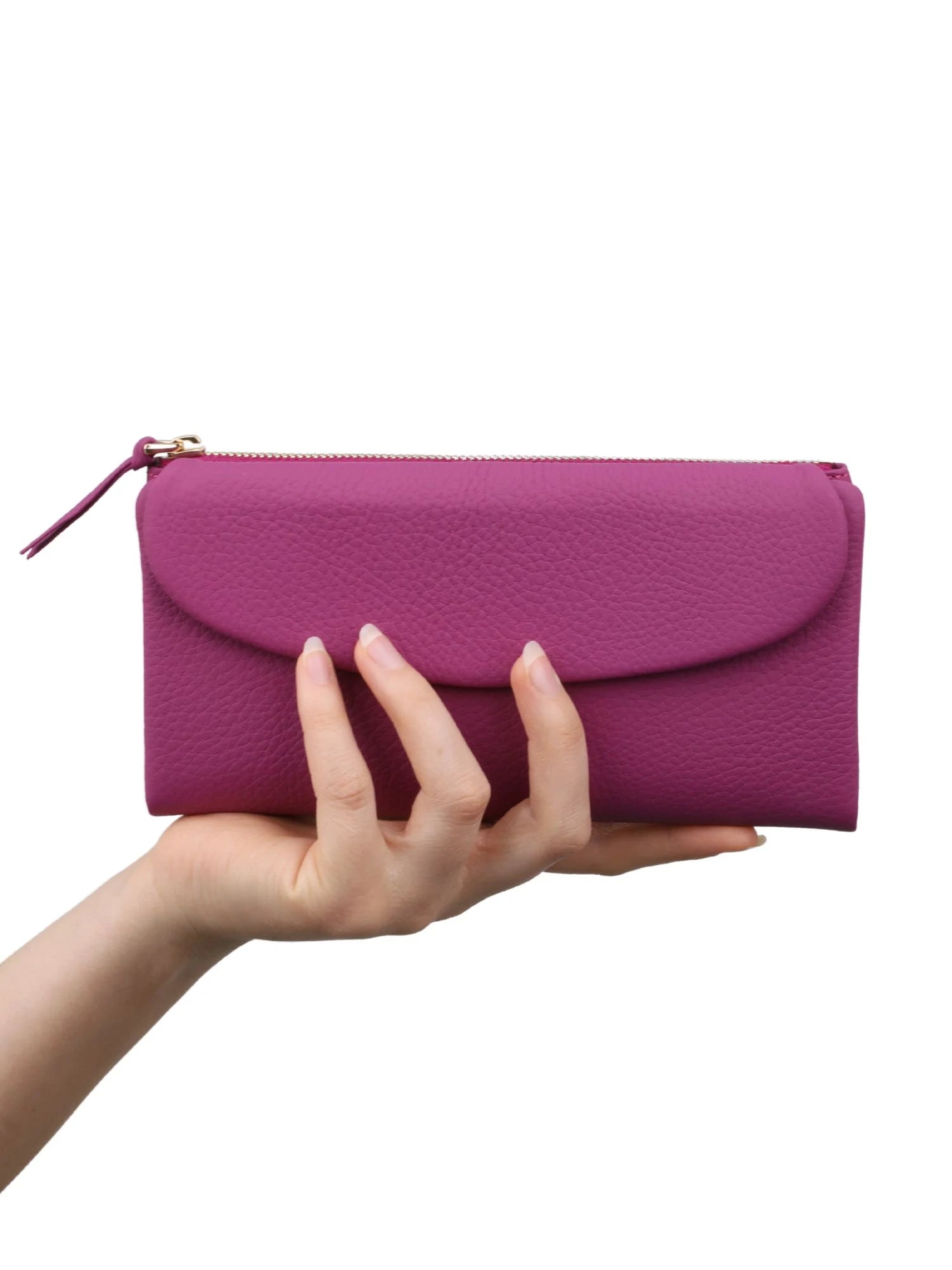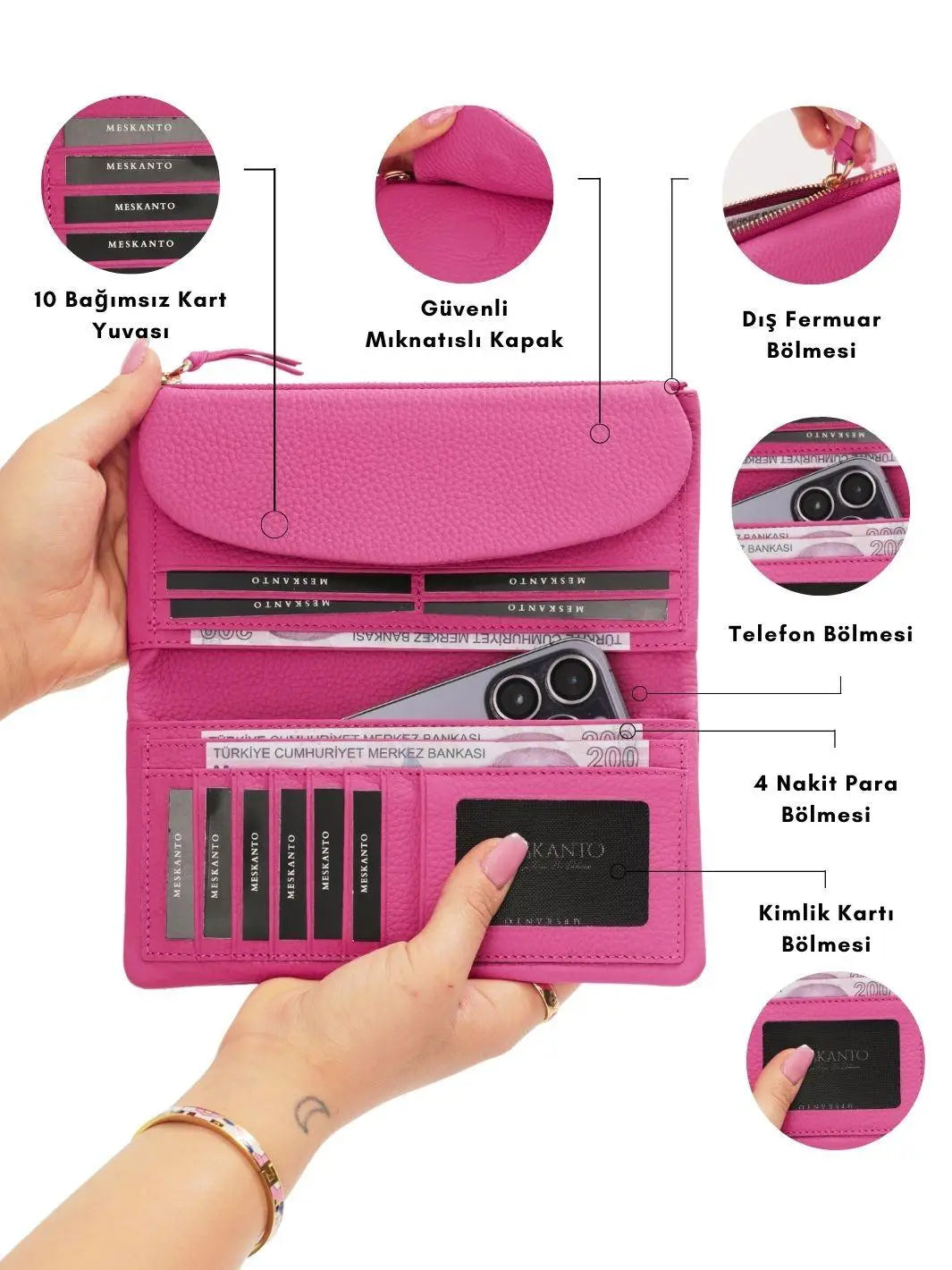 Daisy Hakiki Deri Telefon Bölmeli Kadın Cüzdan (Fuşya)