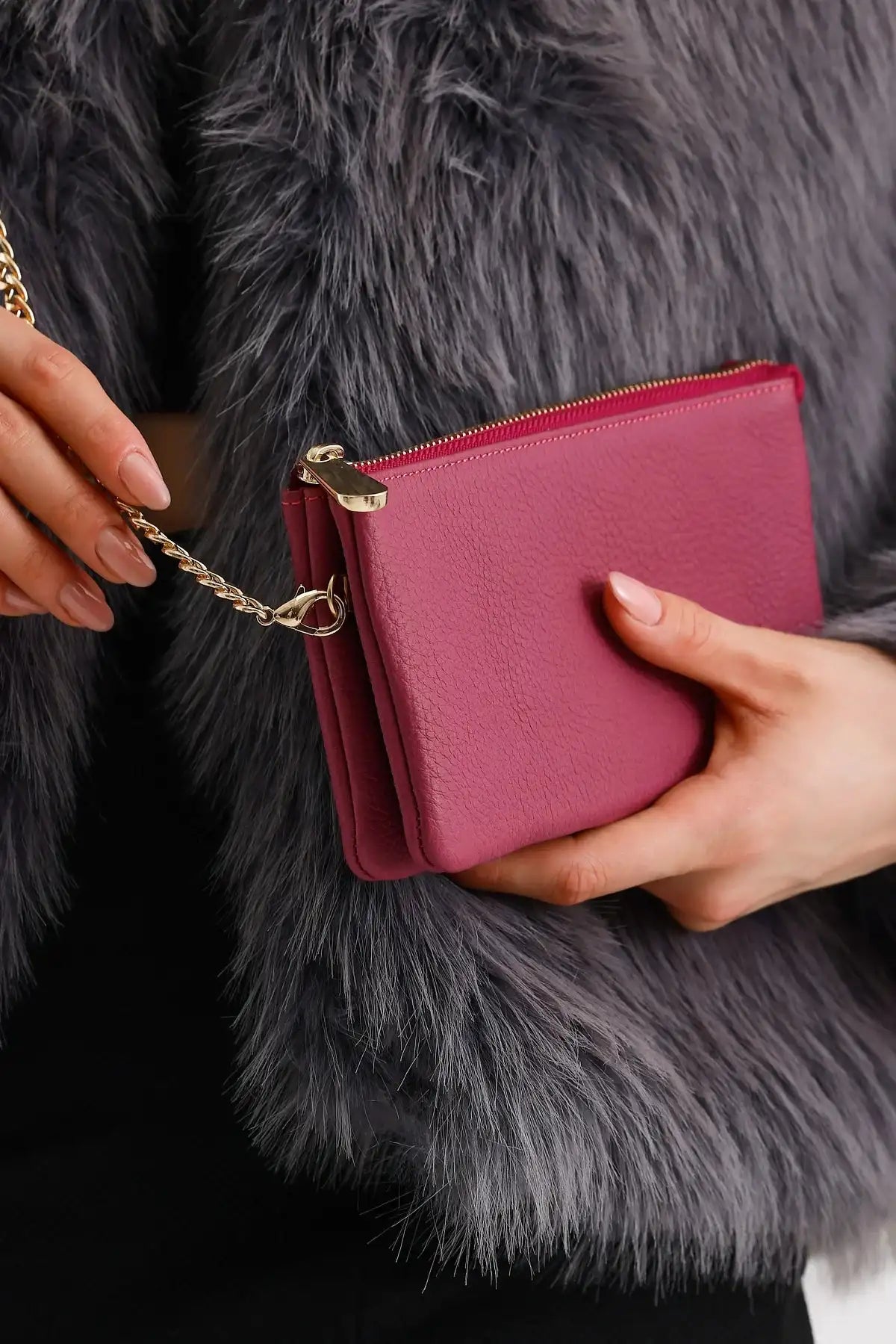 Emily, 11 cm genişlik ve 20 cm yükseklik ölçüleriyle kompakt yapıdadır. İçerisinde 2 fermuarlı bölme bulunan tasarım, tüm ihtiyaçlarınızı karşılar. Pratik zincirli askısı sayesinde güvenli taşıma imkanı sunar.