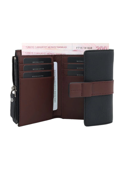 Lina Hakiki Deri Kadın Cüzdanı (Siyah-Taba)