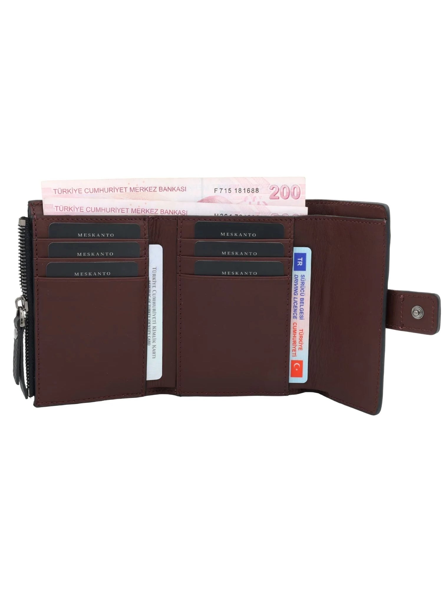 8 bağımsız kart yuvası sayesinde kartlarınızı düzenli şekilde taşıyabilir, nakit para bölmesine kağıt paralarınızı kolayca yerleştirebilirsiniz. Fermuarlı bozuk para gözü ise madeni paralarınızı güvenle saklamanızı sağlar. Lina, zarafet ile işlevselliği tek bir cüzdanda buluşturur.
