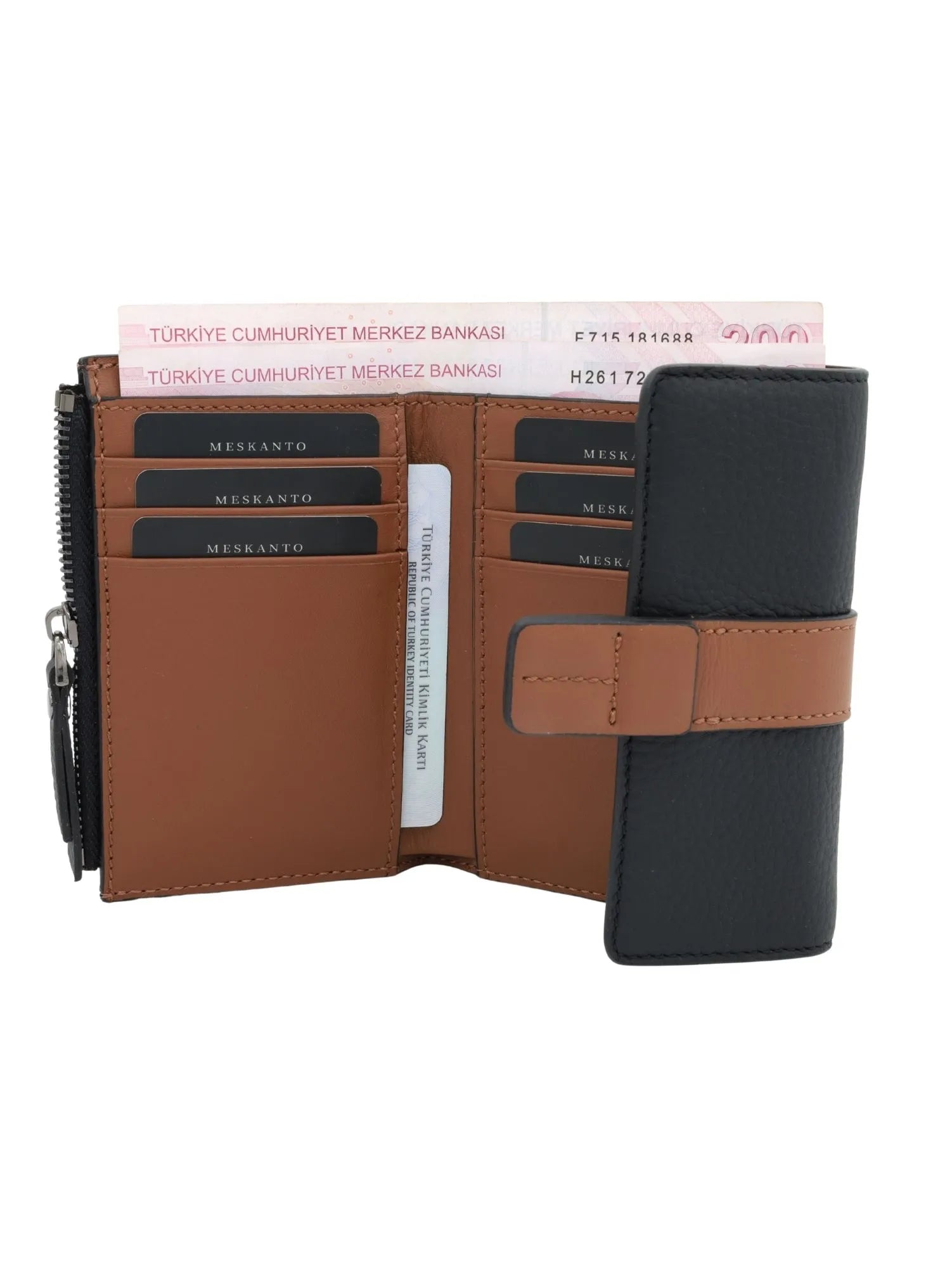 Lina Hakiki Deri Kadın Cüzdanı (Siyah-Taba)
