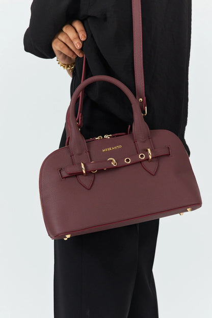 Milano Hakiki Deri Kadın El Omuz Çantası (Bordo)