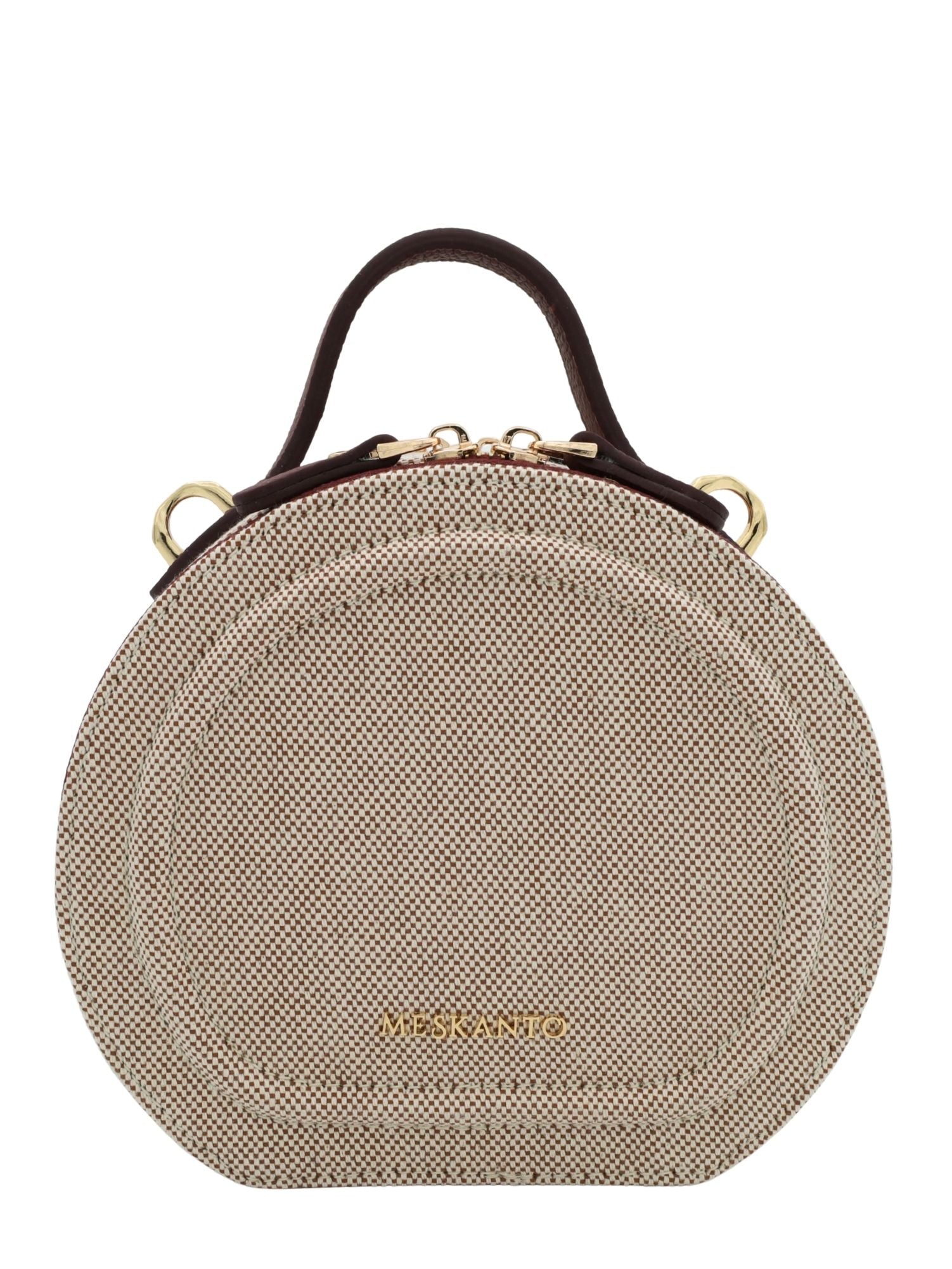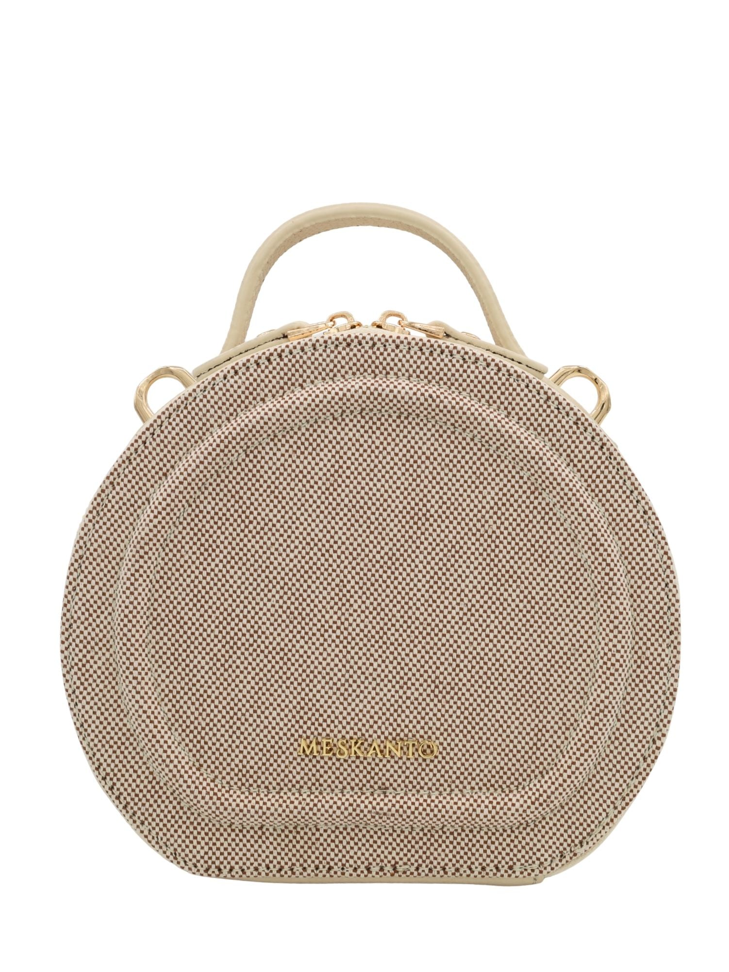 Mira çift fermuar kapaklı yuvarlak çanta, modern tasarımı ve çift bölmeli iç yapısıyla eşyalarınızı düzenli tutar. Zincir detaylı omuz askısı şıklık katarken, hafif kanvas gövde ve deri detaylar dayanıklı ve estetik kullanım sağlar.