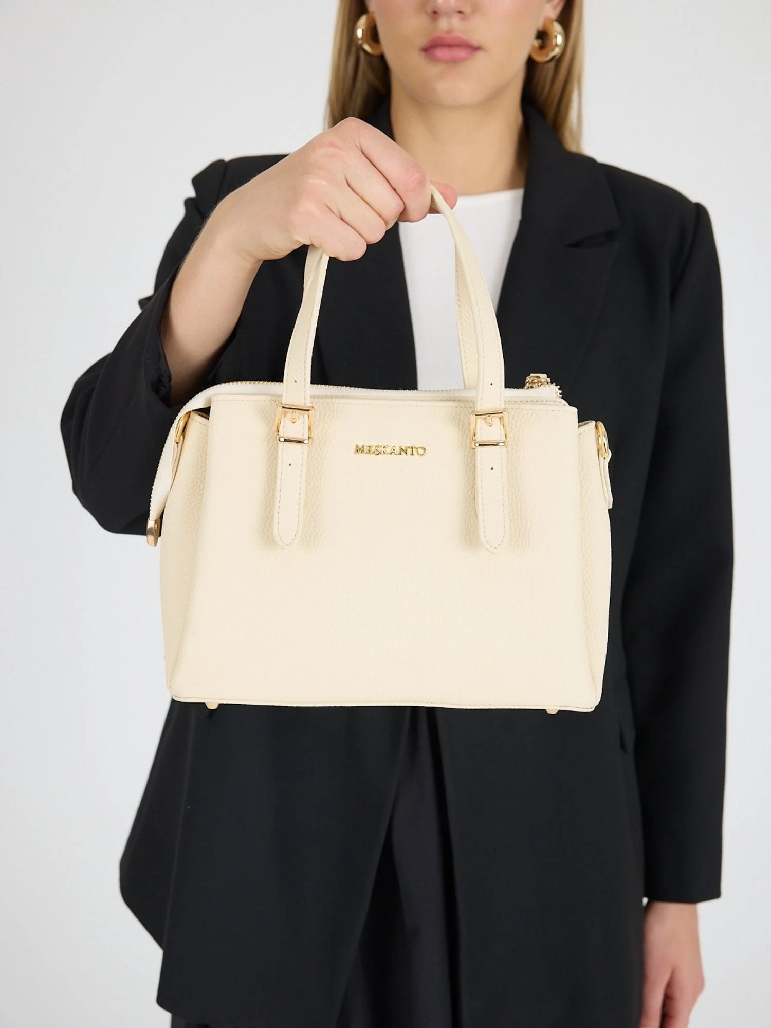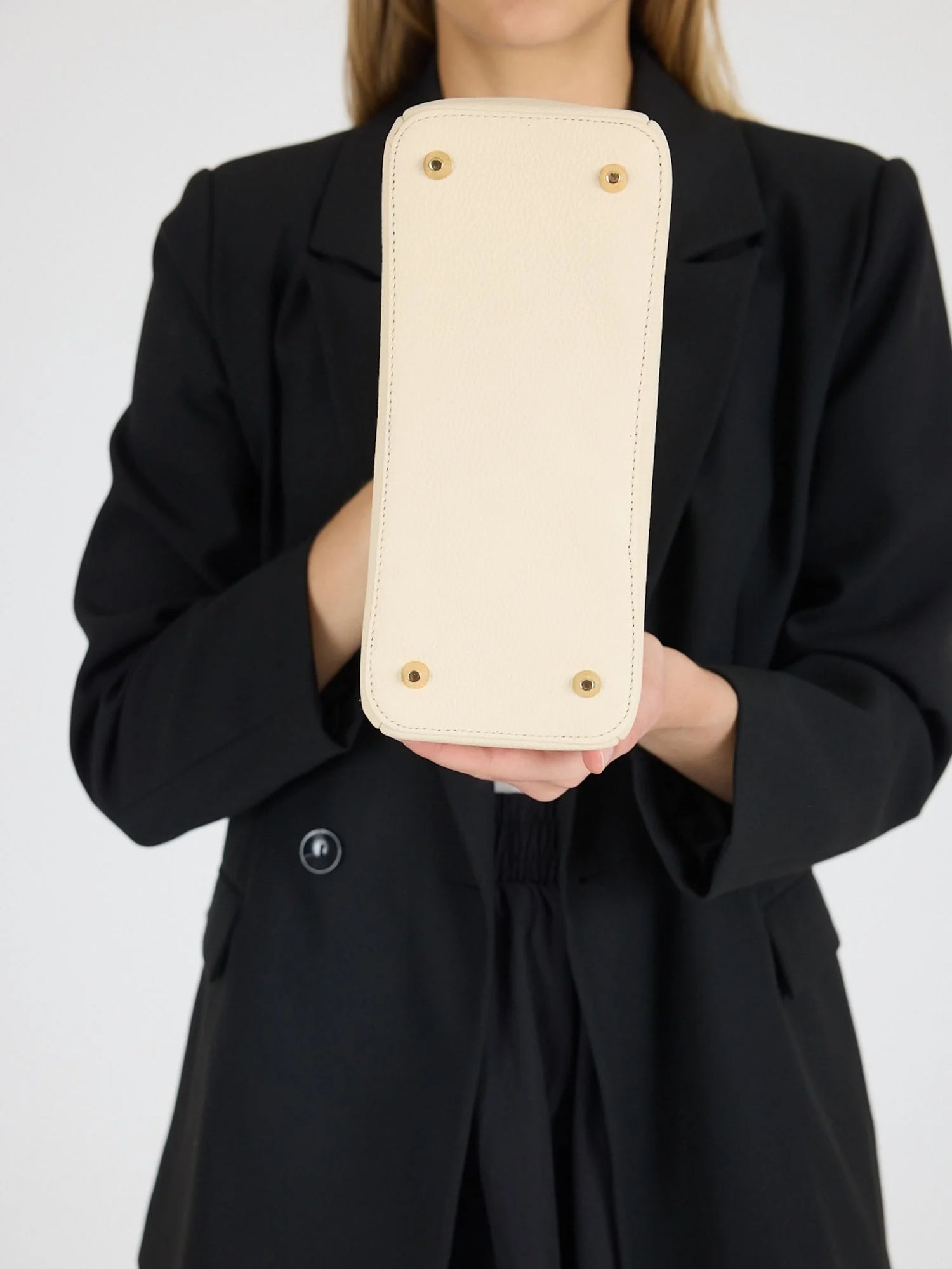 Monaco Hakiki Deri Askılı El ve Omuz Çantası (Krem)