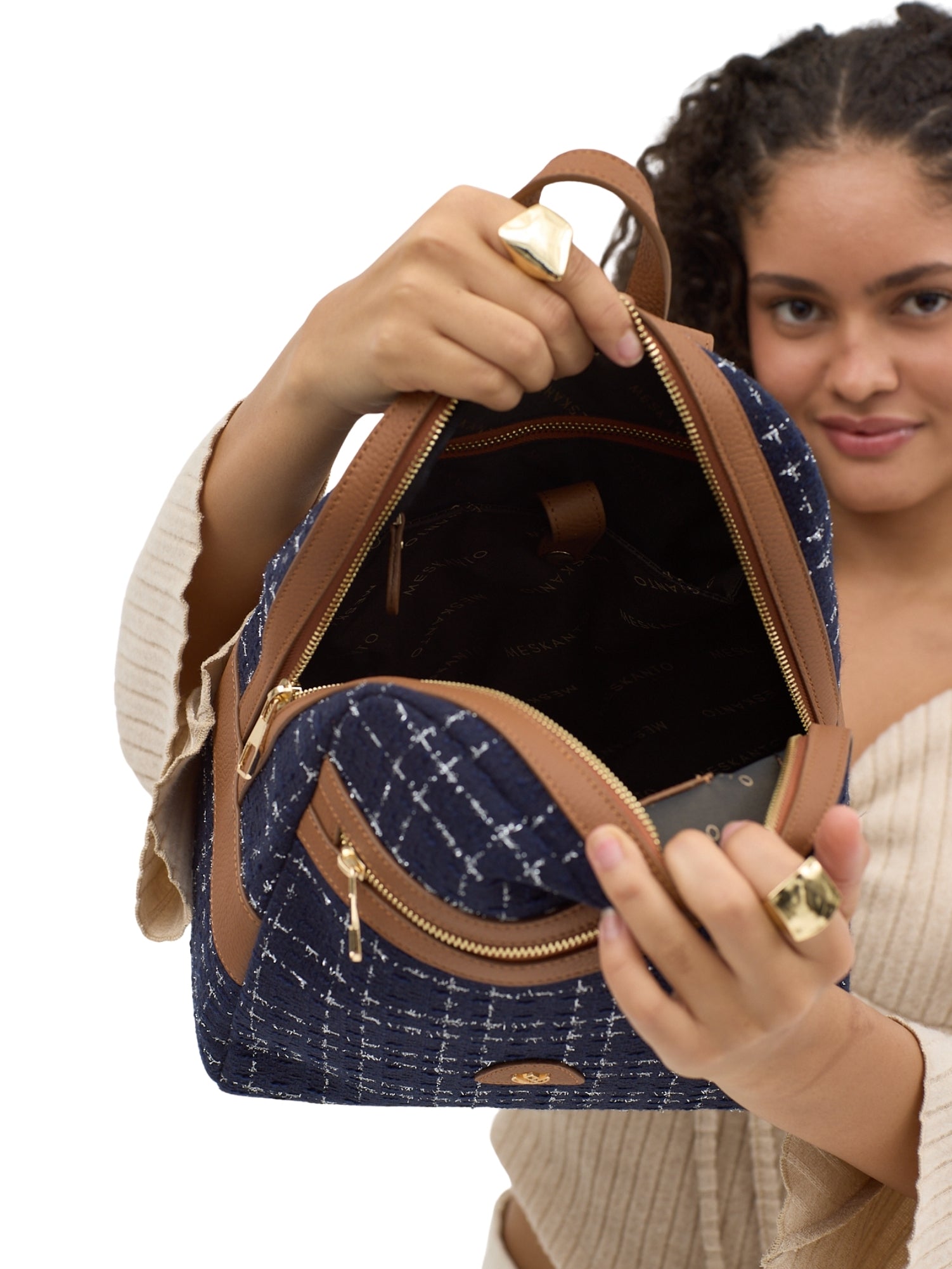 Gold metal detayları ve zarif Meskanto logosu, tasarıma sofistike bir karakter kazandırır. 30 cm yükseklik, 25 cm genişlik ve 15 cm derinlik ölçüleriyle günlük yaşamdan seyahatlere kadar her anınıza eşlik eder.
