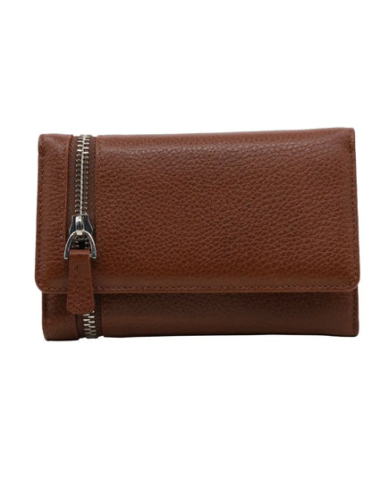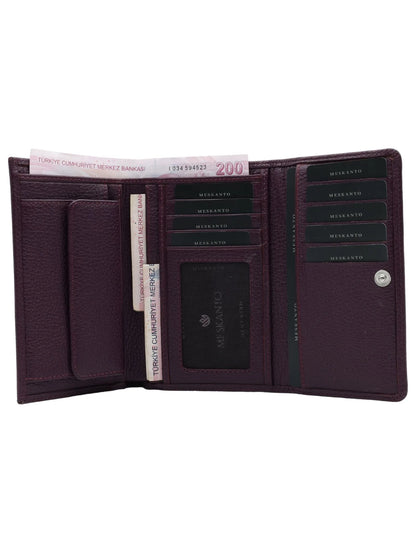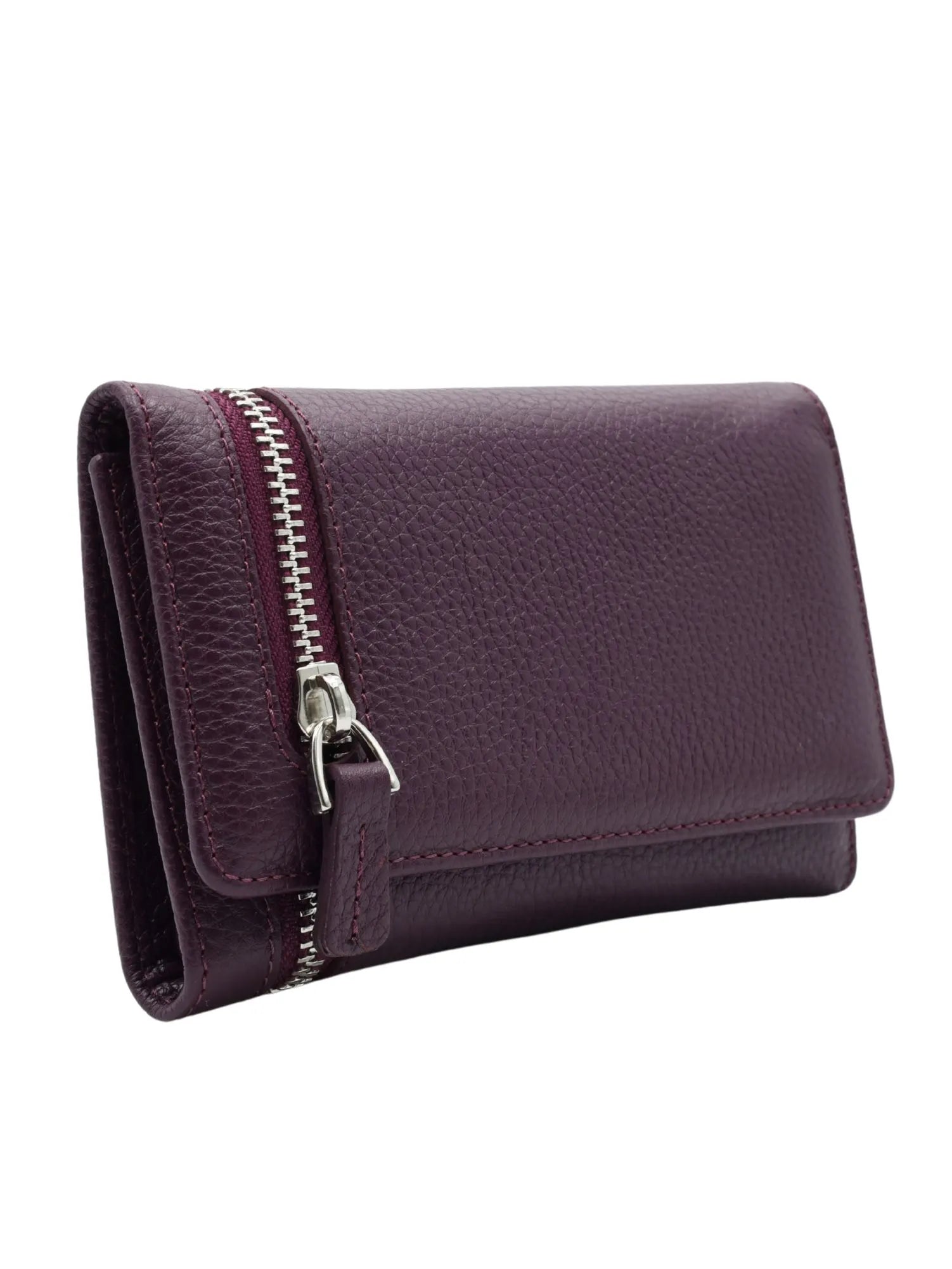 Sara Hakiki Deri Fermuarlı Kadın Cüzdan (Mor)