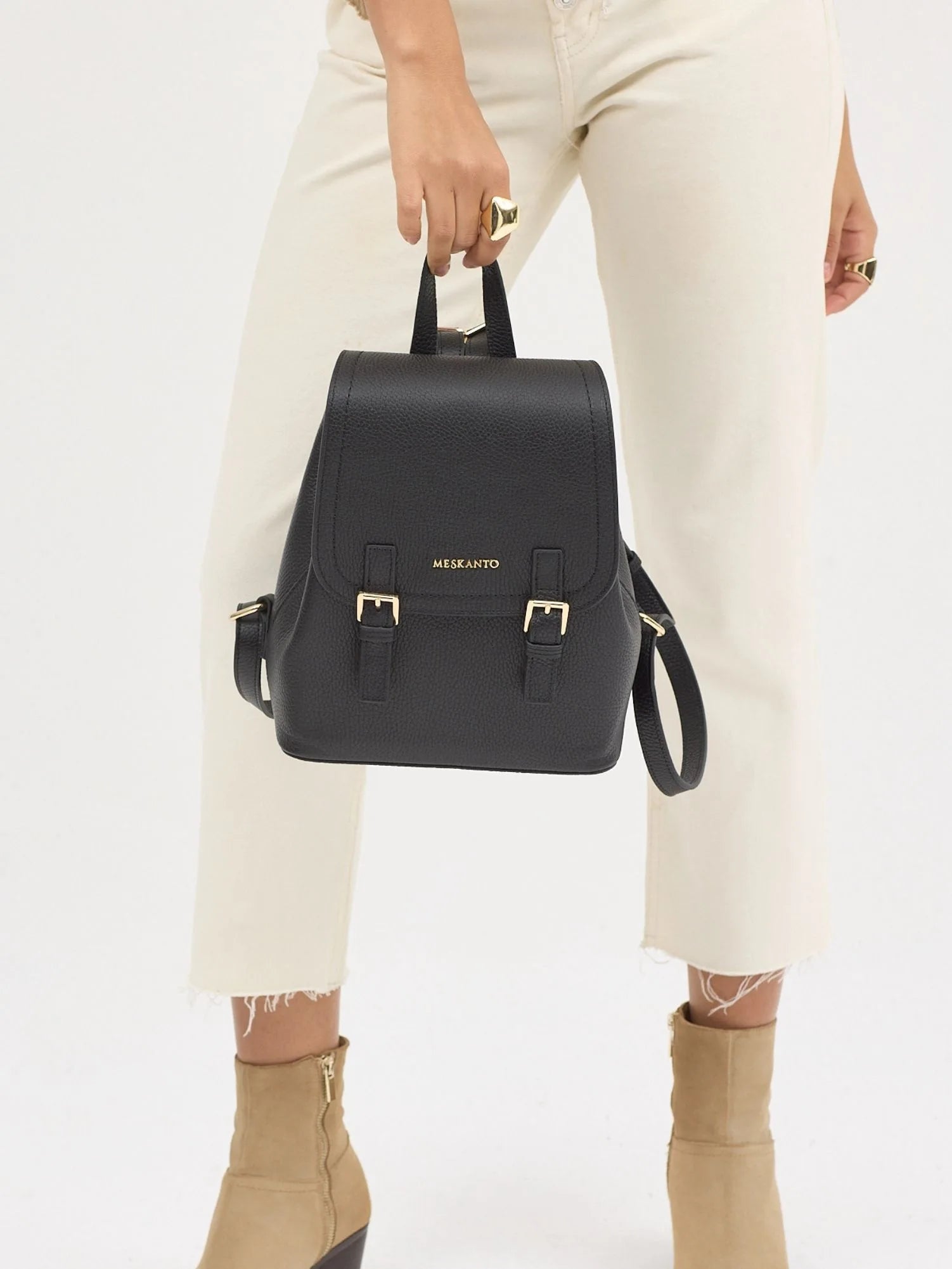Meskanto Serena model hakiki deri sırt çanta, zamansız şıklığı modern işlevsellikle bir araya getirir. %100 hakiki deriden üretilen model, astarlı iç yapısı ile dayanıklılık sunarken; 1 adet fermuarlı ve 1 adet fermuarsız iç bölmesi sayesinde eşyalarınızı düzenli bir şekilde taşımanızı sağlar. Günlük yaşamda, işte, okulda ve seyahatlerinizde yanınızdan ayırmak istemeyeceğiniz bir parçadır. Gold metal aksesuarları ve zarif Meskanto logosu, tasarıma şık bir karakter katar. Ayarlanabilir omuz askısı ile konforu lükse dönüştüren bu çanta, uzun yıllar stilinizin vazgeçilmez tamamlayıcısı olacak.