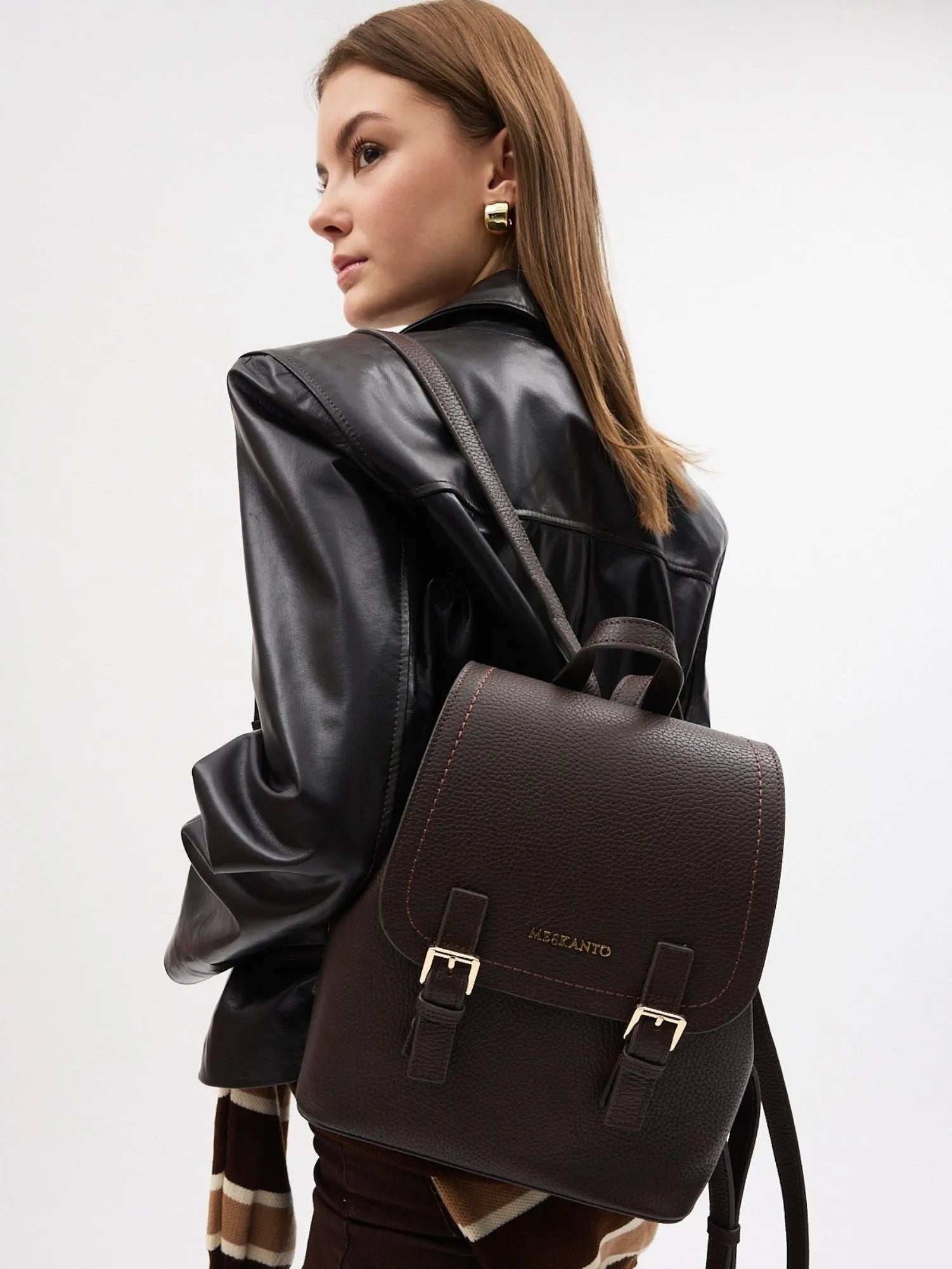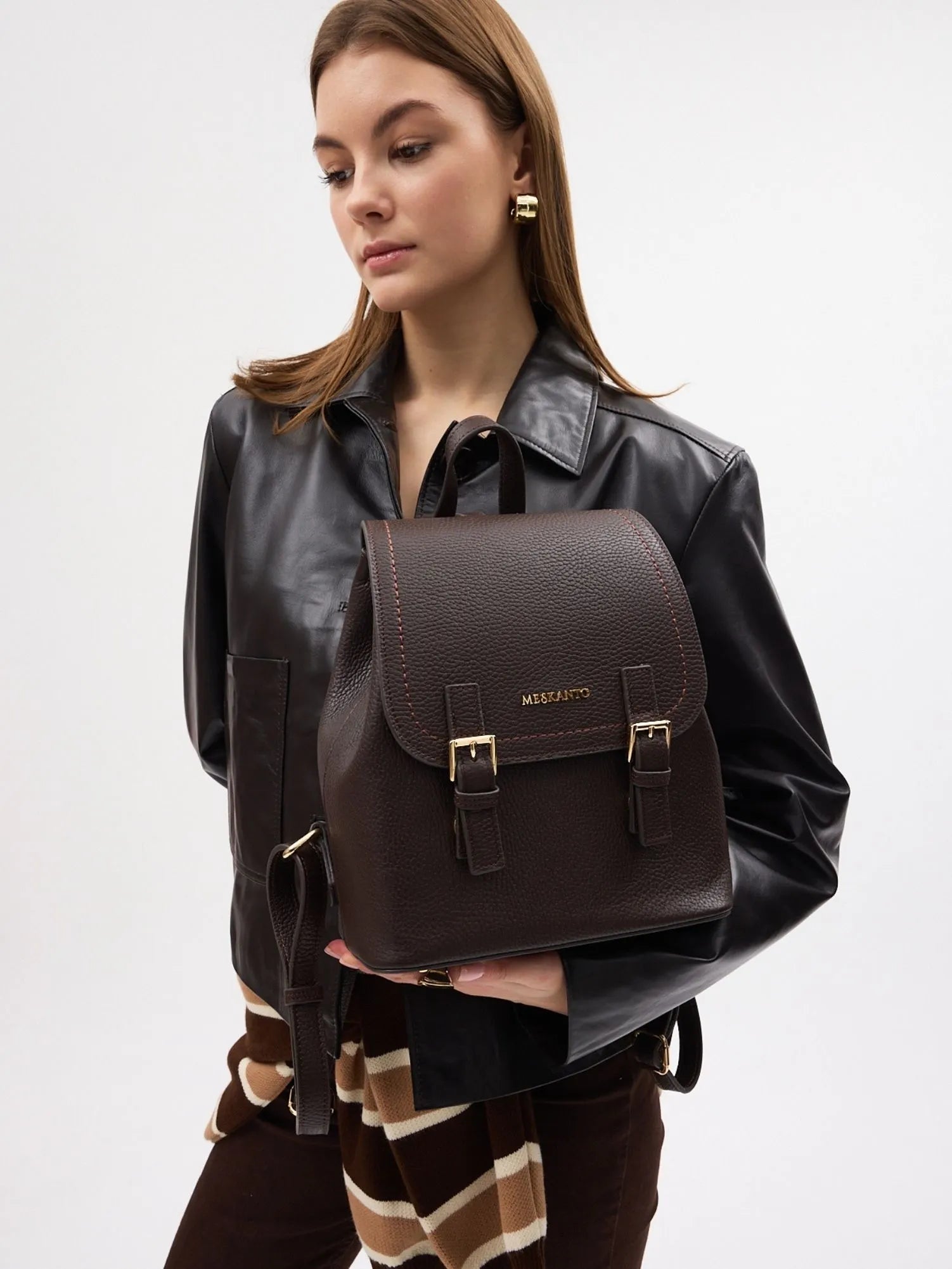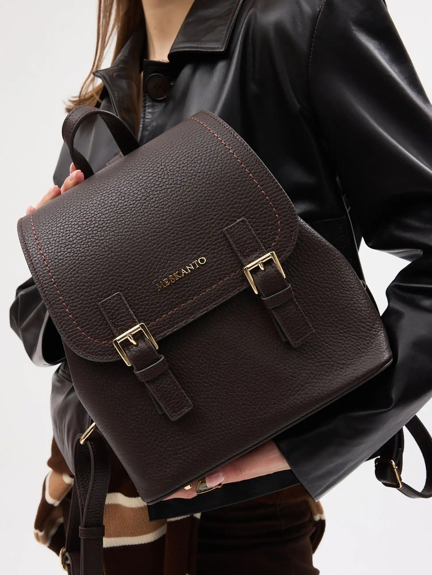 Serena Hakiki Deri Sırt Çantası (Acı Kahve)