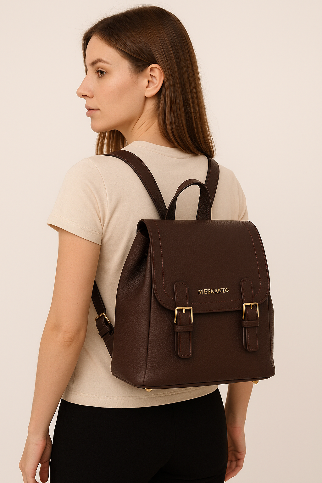 Meskanto Serena model hakiki deri sırt çanta, zamansız şıklığı modern işlevsellikle bir araya getirir. %100 hakiki deriden üretilen model, astarlı iç yapısı ile dayanıklılık sunarken; 1 adet fermuarlı ve 1 adet fermuarsız iç bölmesi sayesinde eşyalarınızı düzenli bir şekilde taşımanızı sağlar. Günlük yaşamda, işte, okulda ve seyahatlerinizde yanınızdan ayırmak istemeyeceğiniz bir parçadır. Gold metal aksesuarları ve zarif Meskanto logosu, tasarıma şık bir karakter katar. Ayarlanabilir omuz askısı ile konforu lükse dönüştüren bu çanta, uzun yıllar stilinizin vazgeçilmez tamamlayıcısı olacak.