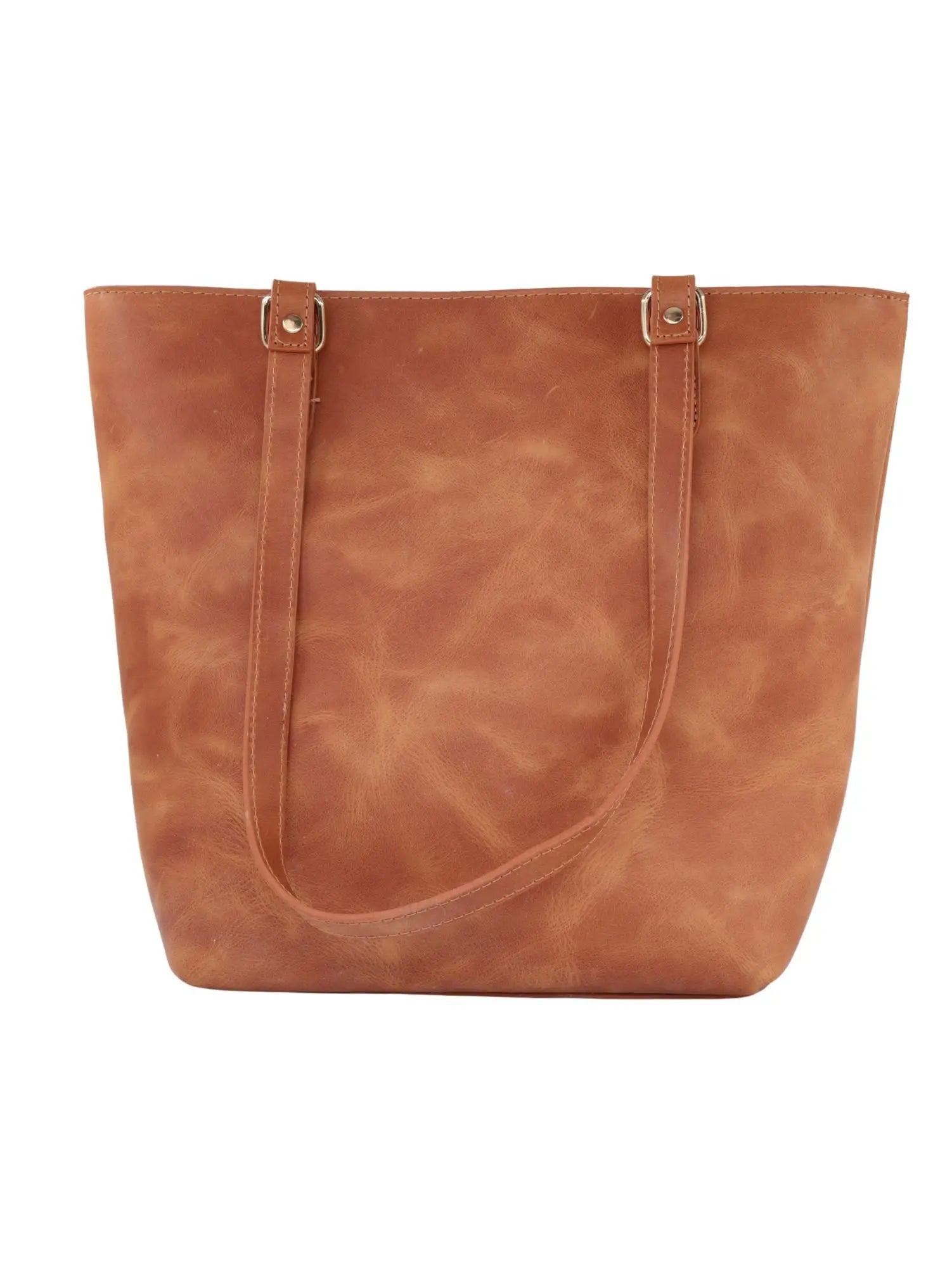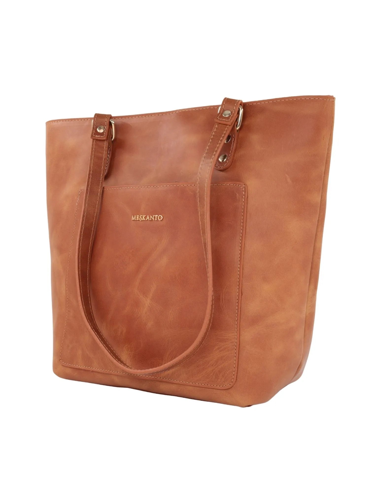Tote Hakiki Deri Kadın Alışveriş Kol ve Omuz Çantası (Floater Taba)