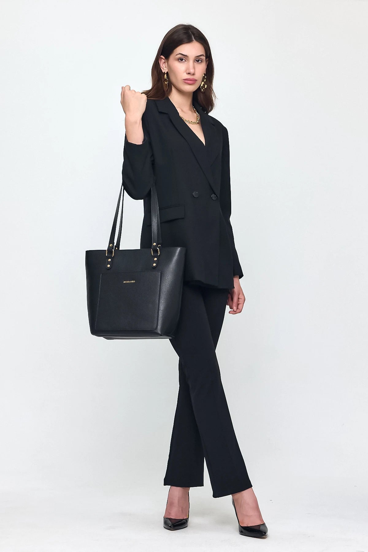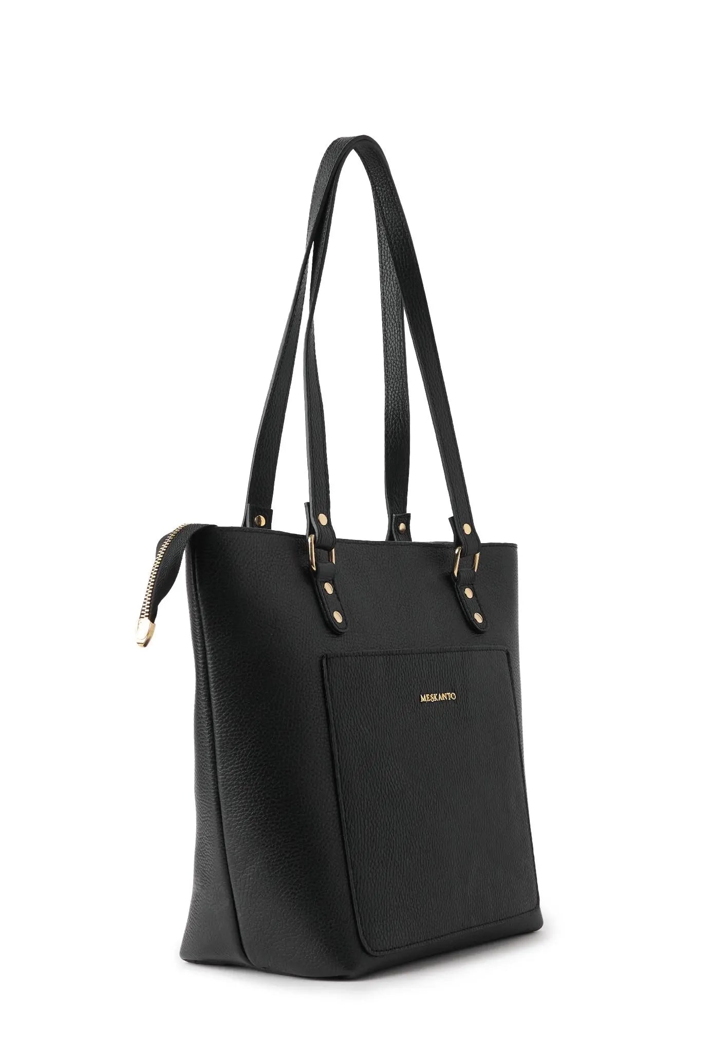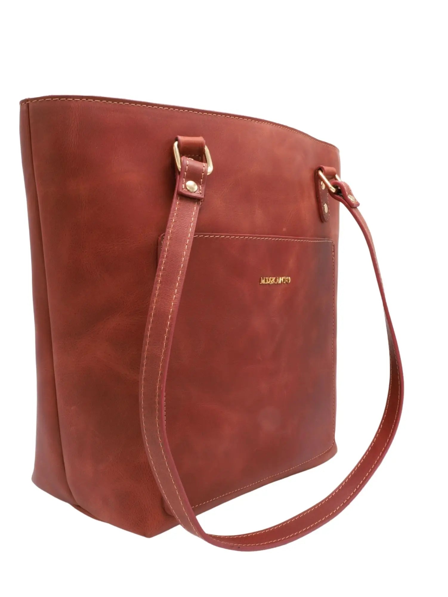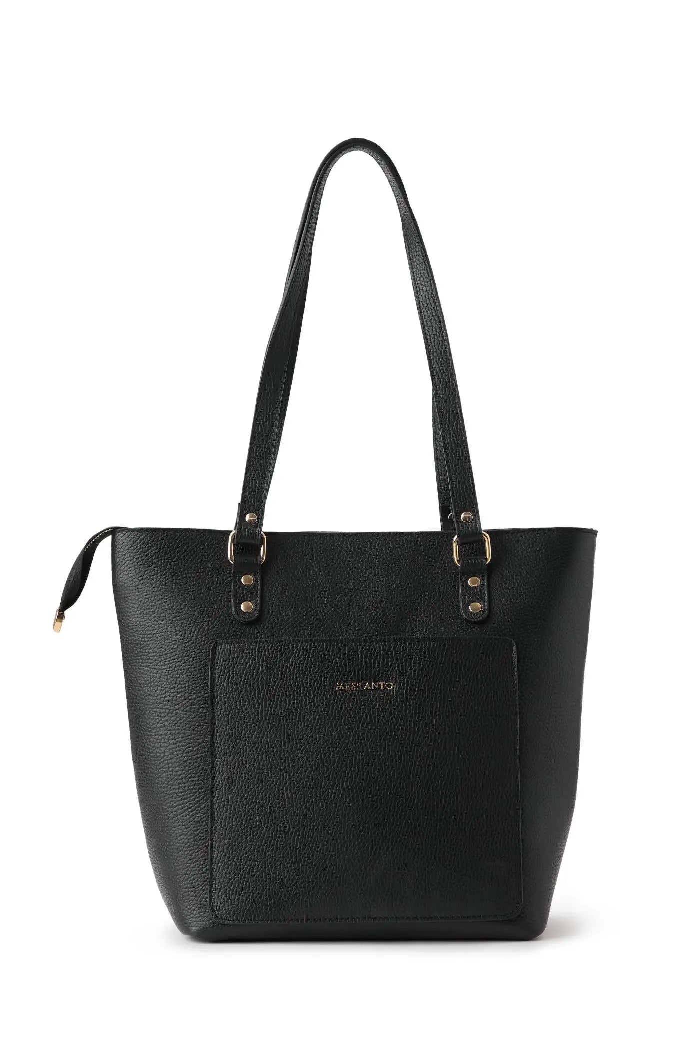 Tote, hakiki deriden üretilmiş olup A4 evrak ve tabletlerinizi rahatça taşır. Ön cebi ve metal fermuarıyla eşyalarınızı güvenle saklamanızı sağlar.