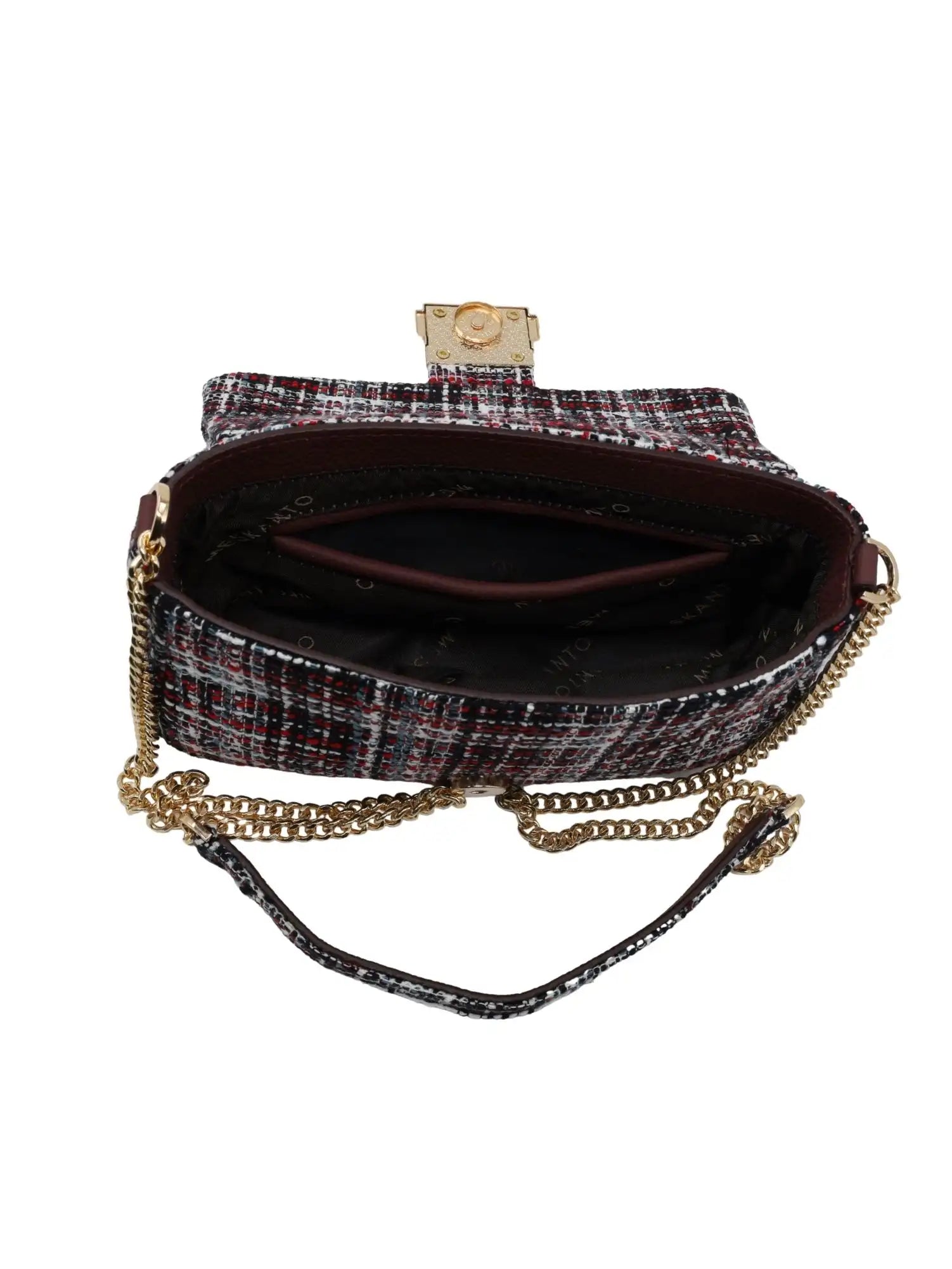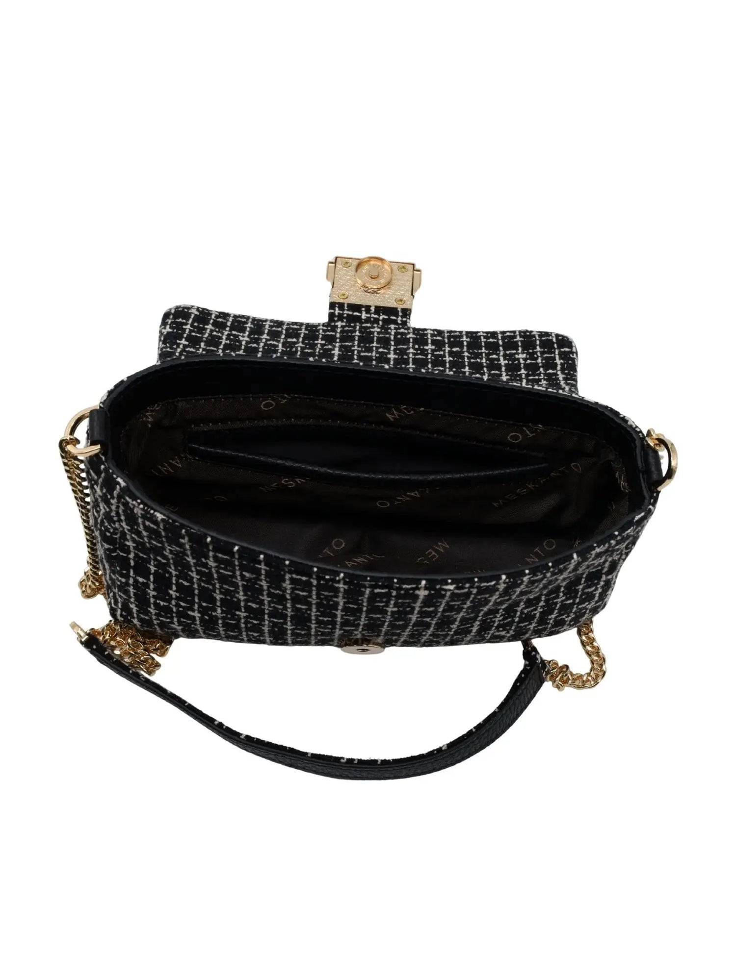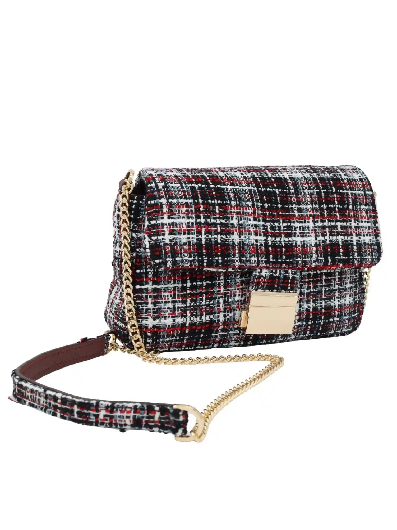 Zarif tasarımı ve işlevselliğiyle öne çıkan bu tüvit kumaş omuz çantası, her stile uyum sağlayan şık bir aksesuar seçeneğidir. Gold zincir askısı ve modern mıknatıslı kapama detayıyla hem estetik hem de pratik bir kullanım sunar. İç kısmında yer alan küçük bölmesi, anahtar, kart veya makyaj malzemesi gibi eşyalarınızı düzenli bir şekilde taşımanızı sağlar. 21 cm genişlik, 15 cm yükseklik ve 5 cm derinlik ölçülerine sahip olan çanta, boyutlarıyla günlük kullanıma uygun bir yapıdadır. Şık detaylarıyla hem gündüz hem de gece kombinlerinizde zarif bir tamamlayıcı olarak öne çıkar.