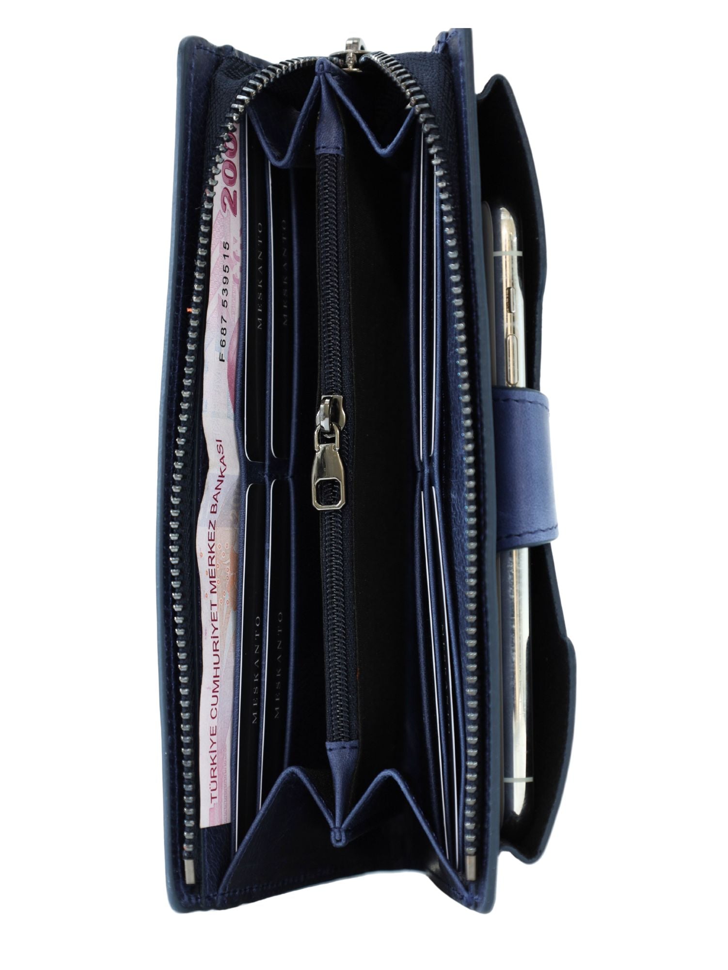 Meskanto - Vera Hakiki Deri Fermuarlı Telefon Bölmeli Uzun Cüzdan - MES-V-1018-SİYAH