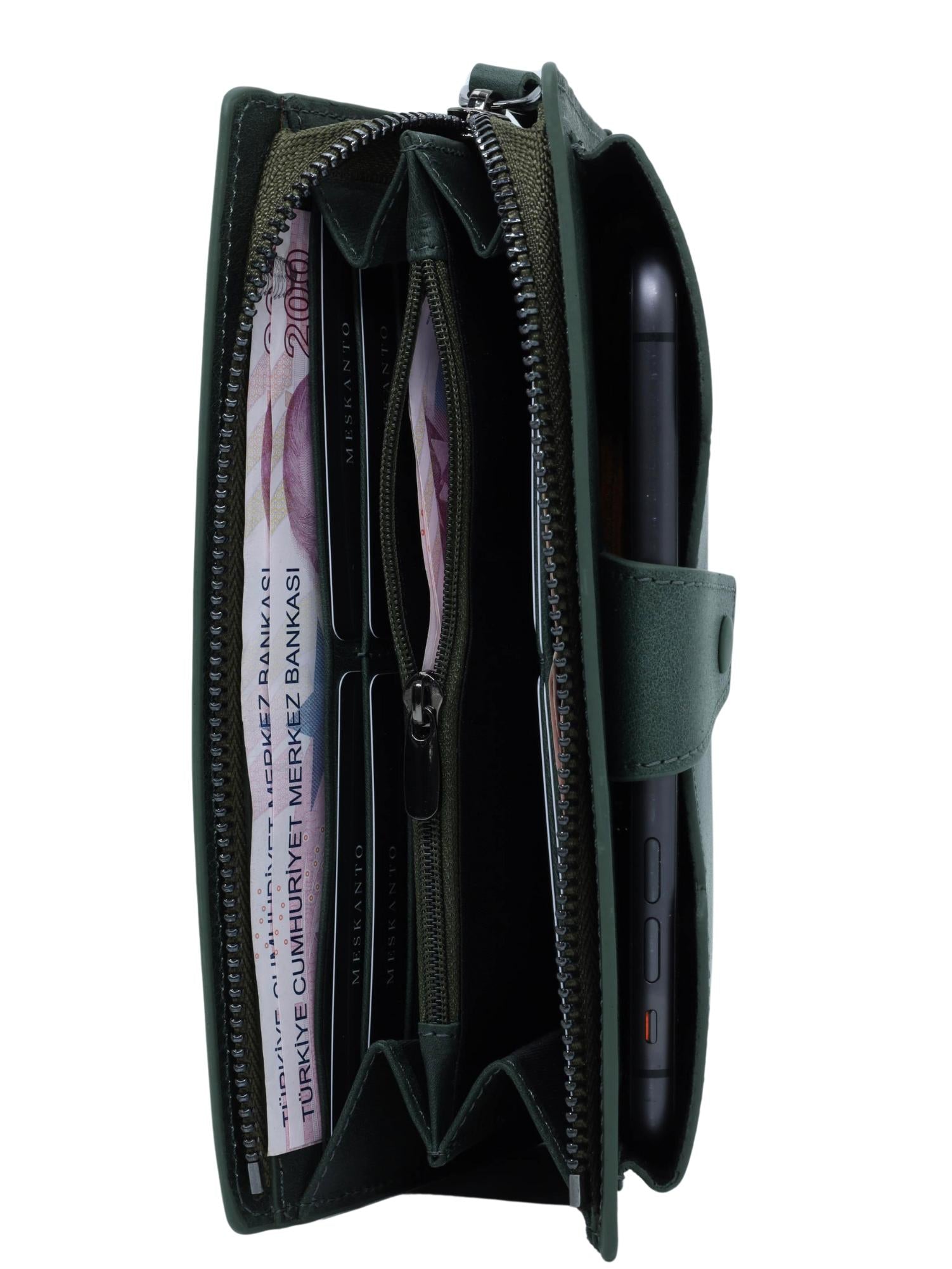 Vera Hakiki Deri Fermuarlı Telefon Bölmeli Kadın Cüzdan (Tiana Yeşil)