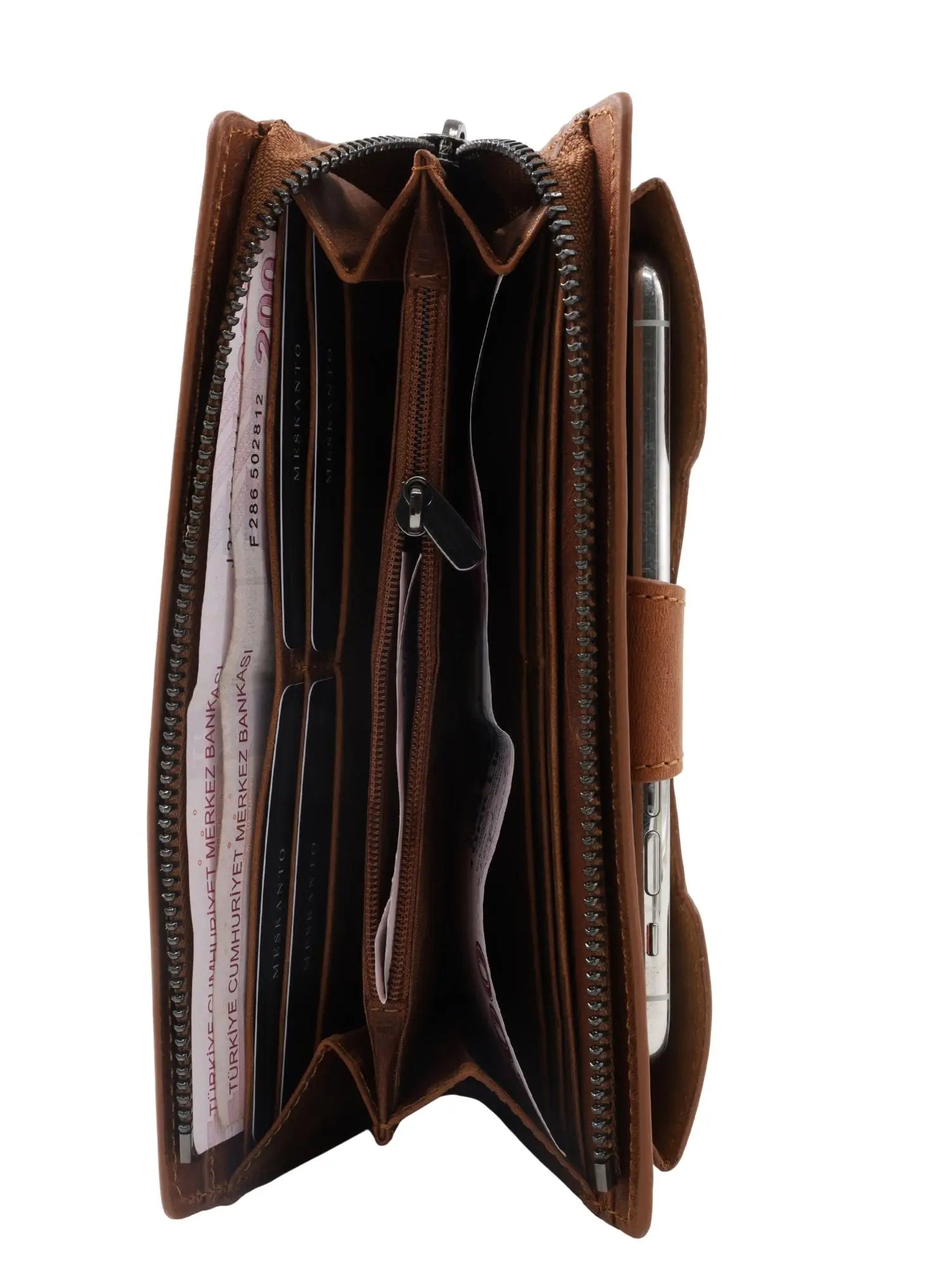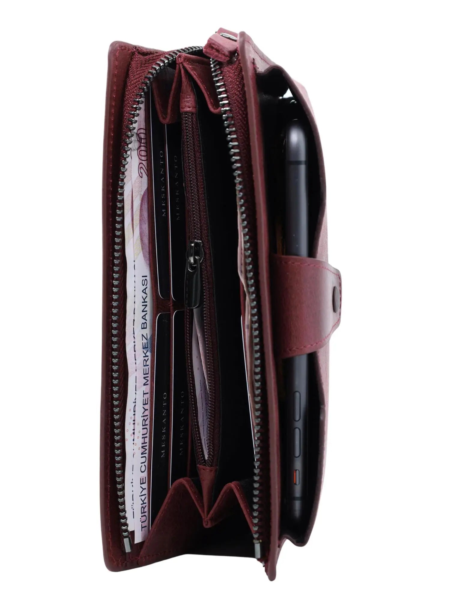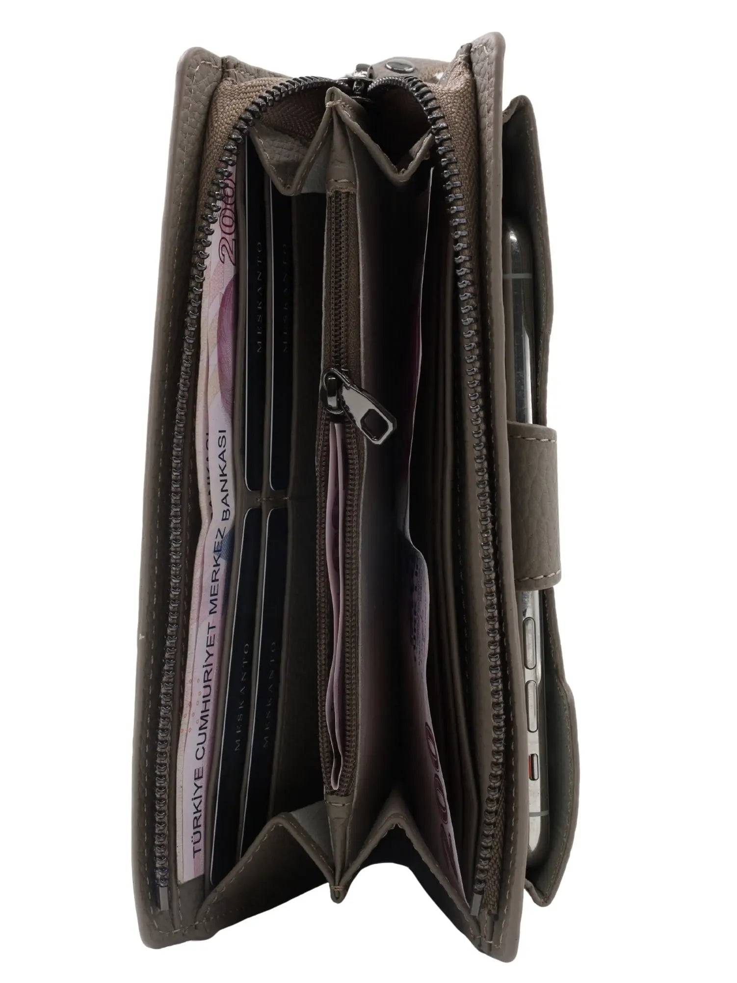 Vera Hakiki Deri Fermuarlı Telefon Bölmeli Kadın Cüzdan