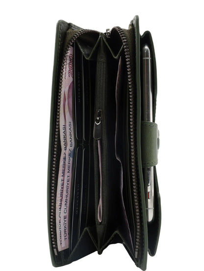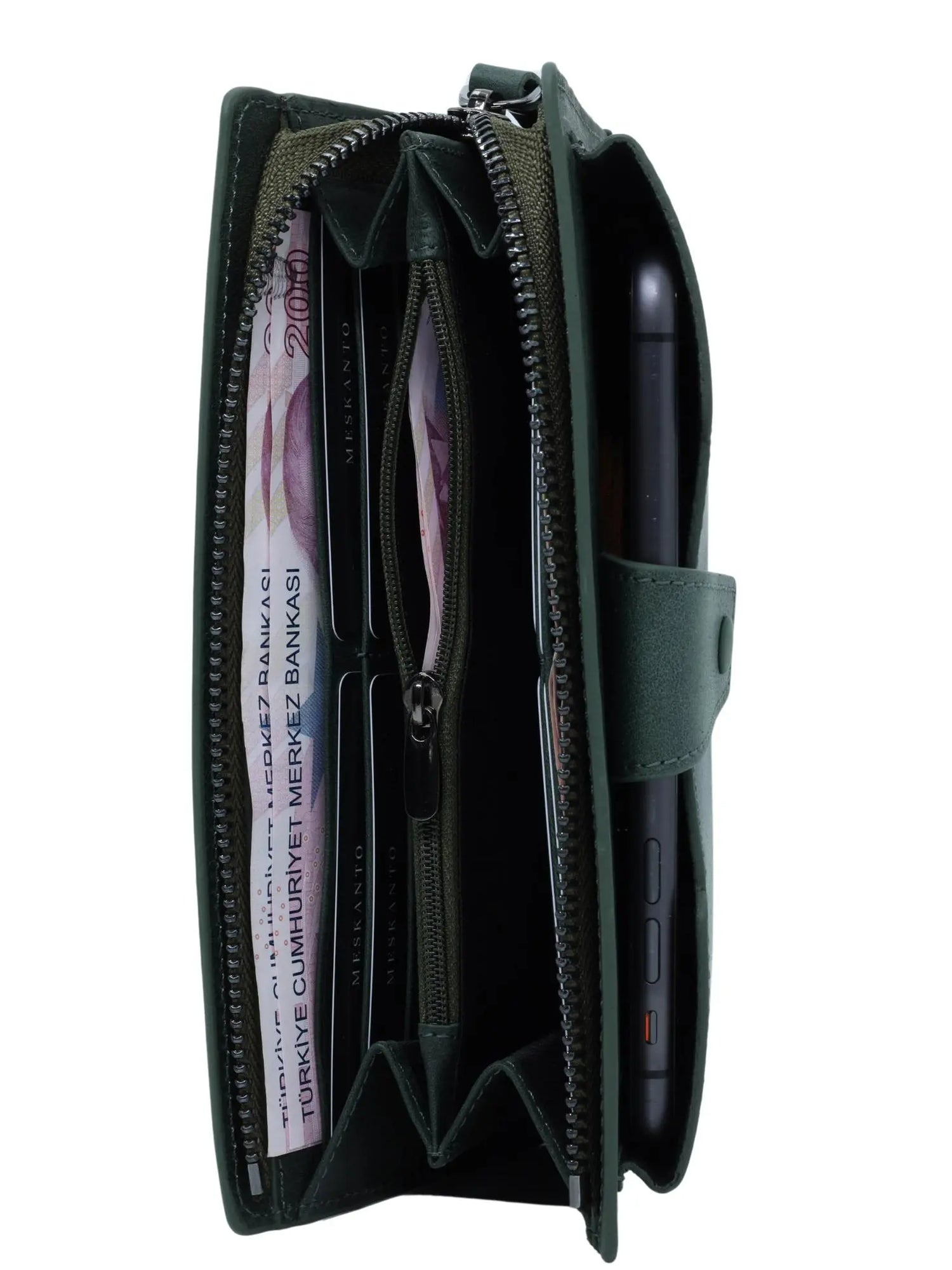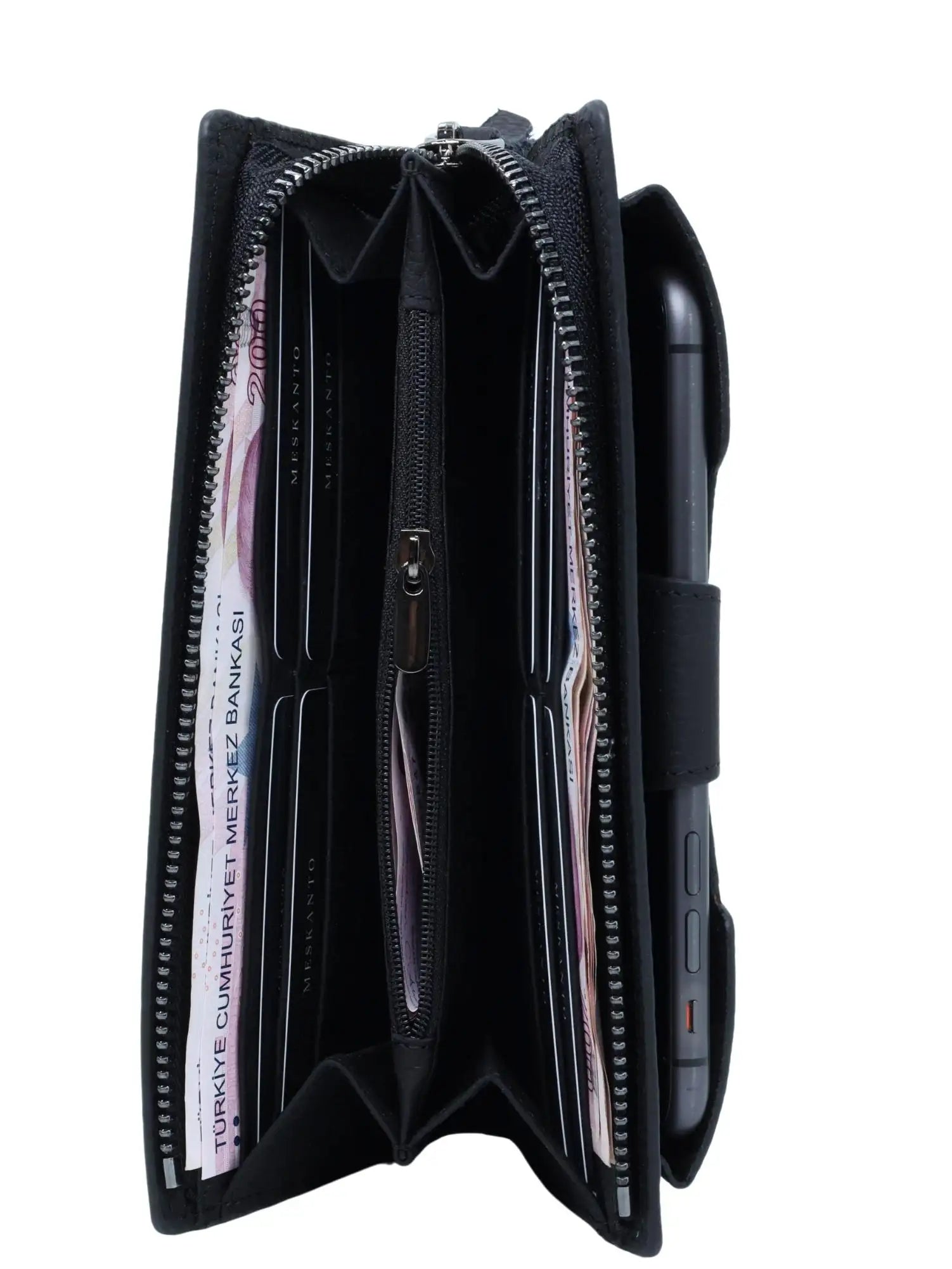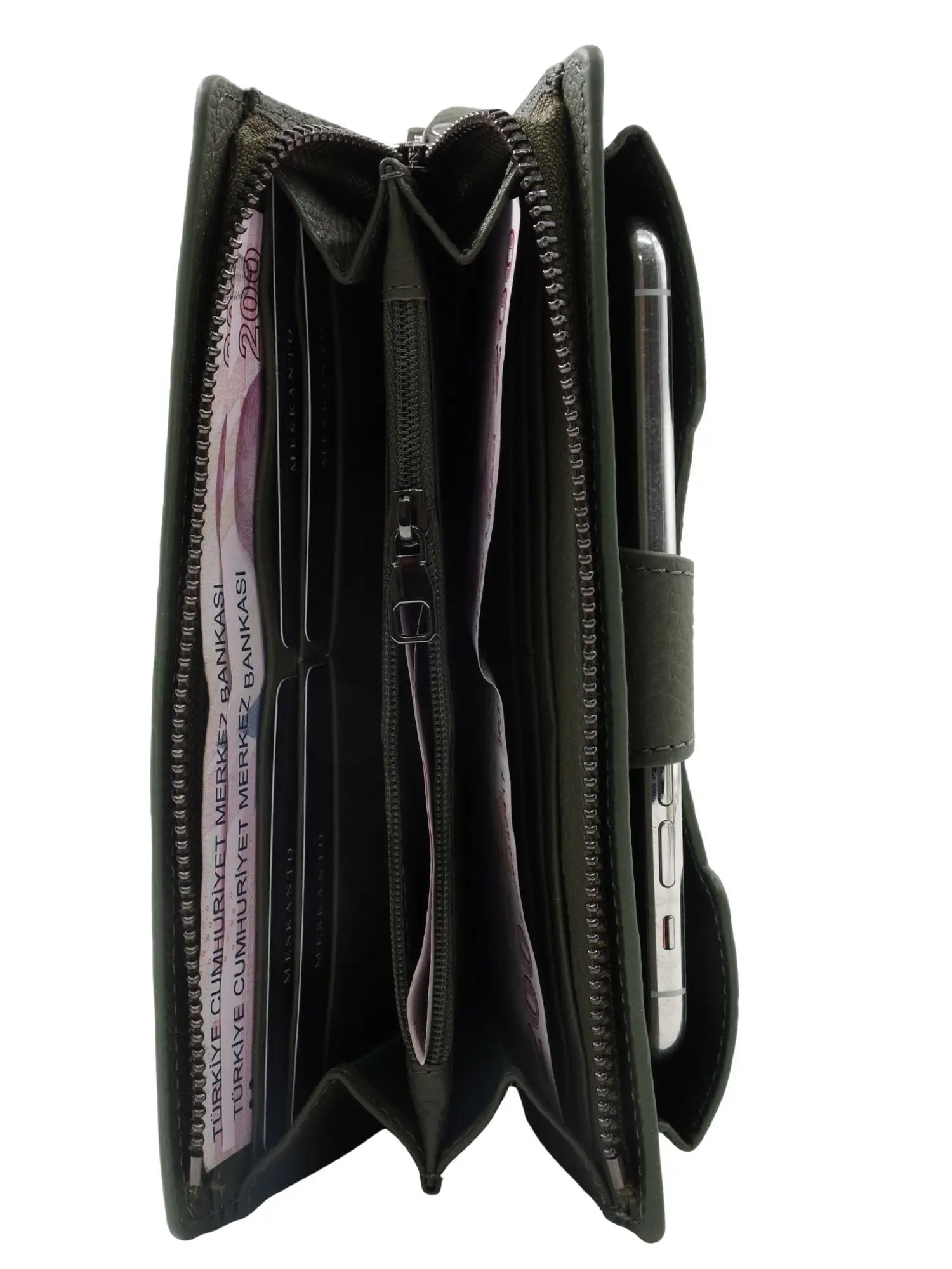 Vera Hakiki Deri Fermuarlı Telefon Bölmeli Kadın Cüzdan
